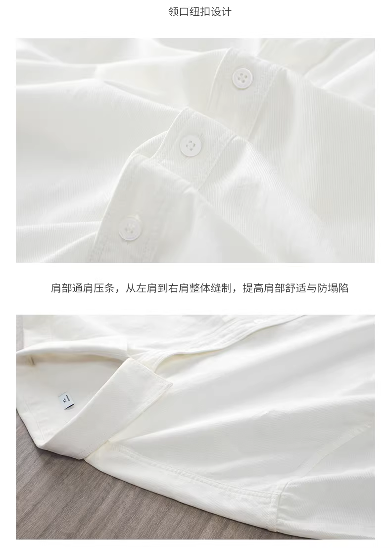 - Áo sơ mi nam tay ngắn chất liệu cotton nguyên chất 350G, kiểu dáng mùa hè phong cách Mỹ, dáng regular, túi rộng, cổ sơ mi, màu trắng tinh khiết.