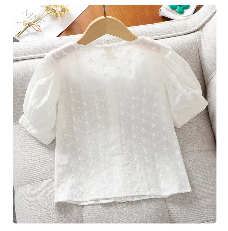 - Áo sơ mi ngắn tay bé gái hè 2025 mẫu mới áo mùa hè trẻ em tay bồng chất liệu cotton nguyên chất áo cotton linen trắng cho bé lớn
