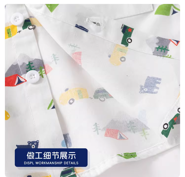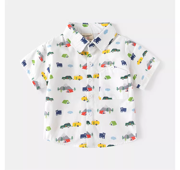 - Áo sơ mi ngắn tay bé trai kiểu mới hè 2025, áo trẻ em thường ngày, cổ trụ, mỏng, in hình hoạt hình