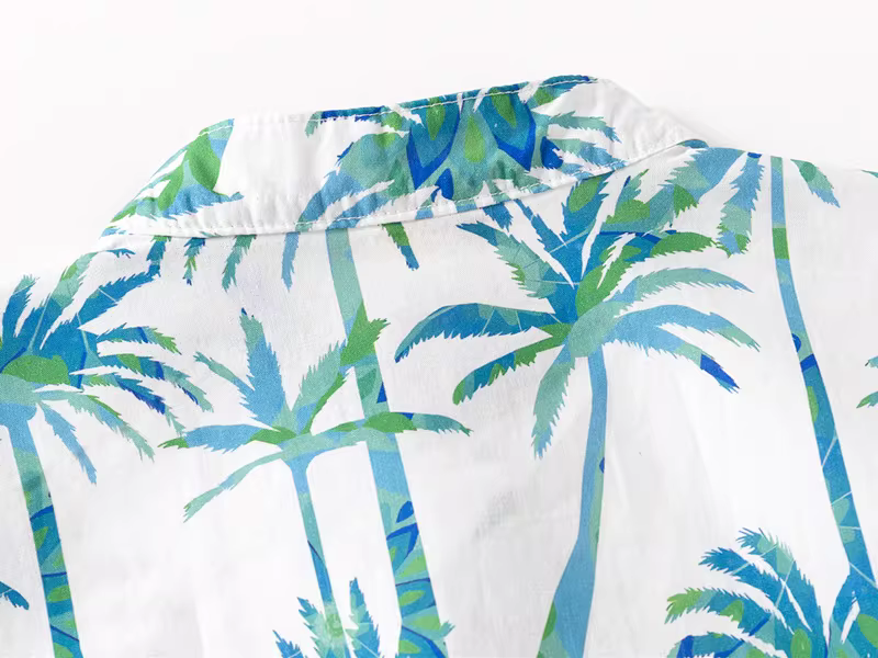 - Áo sơ mi ngắn tay bé trai mùa hè 2025, size nhỏ và trung bình, chất liệu cotton nguyên chất, cổ đứng, kiểu dáng thời trang phong cách biển cho bé.