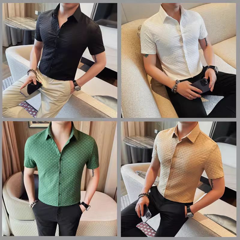 - Áo sơ mi ngắn tay cao cấp dành cho nam, phong cách mùa hè mới, thời trang, thon gọn, đẹp trai, lịch sự, đa năng, áo sơ mi mát mẻ