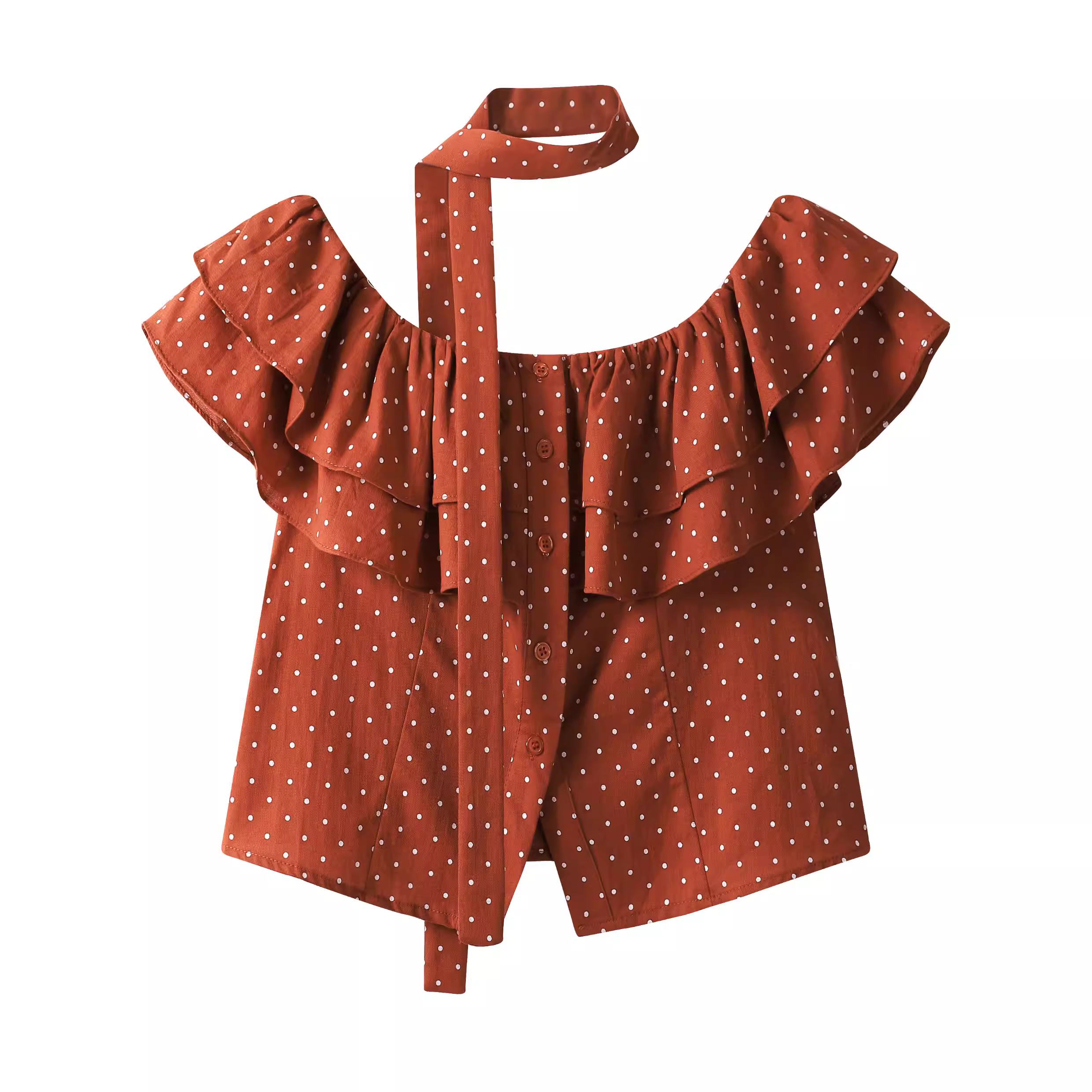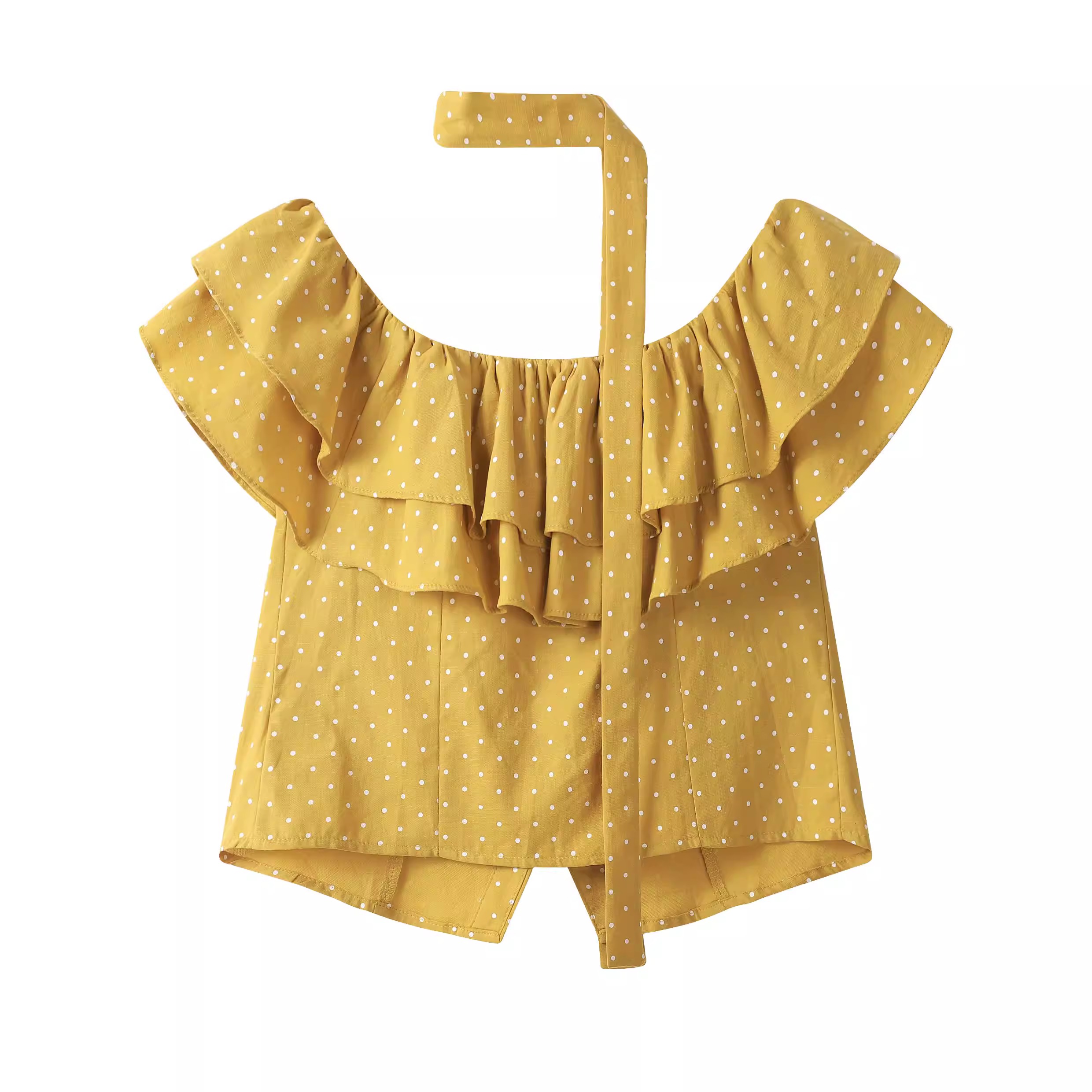 - Áo sơ mi ngắn tay chấm bi trễ vai kiểu Pháp dễ thương dành cho nữ, áo ngắn cổ yếm mùa hè có dây ruy băng