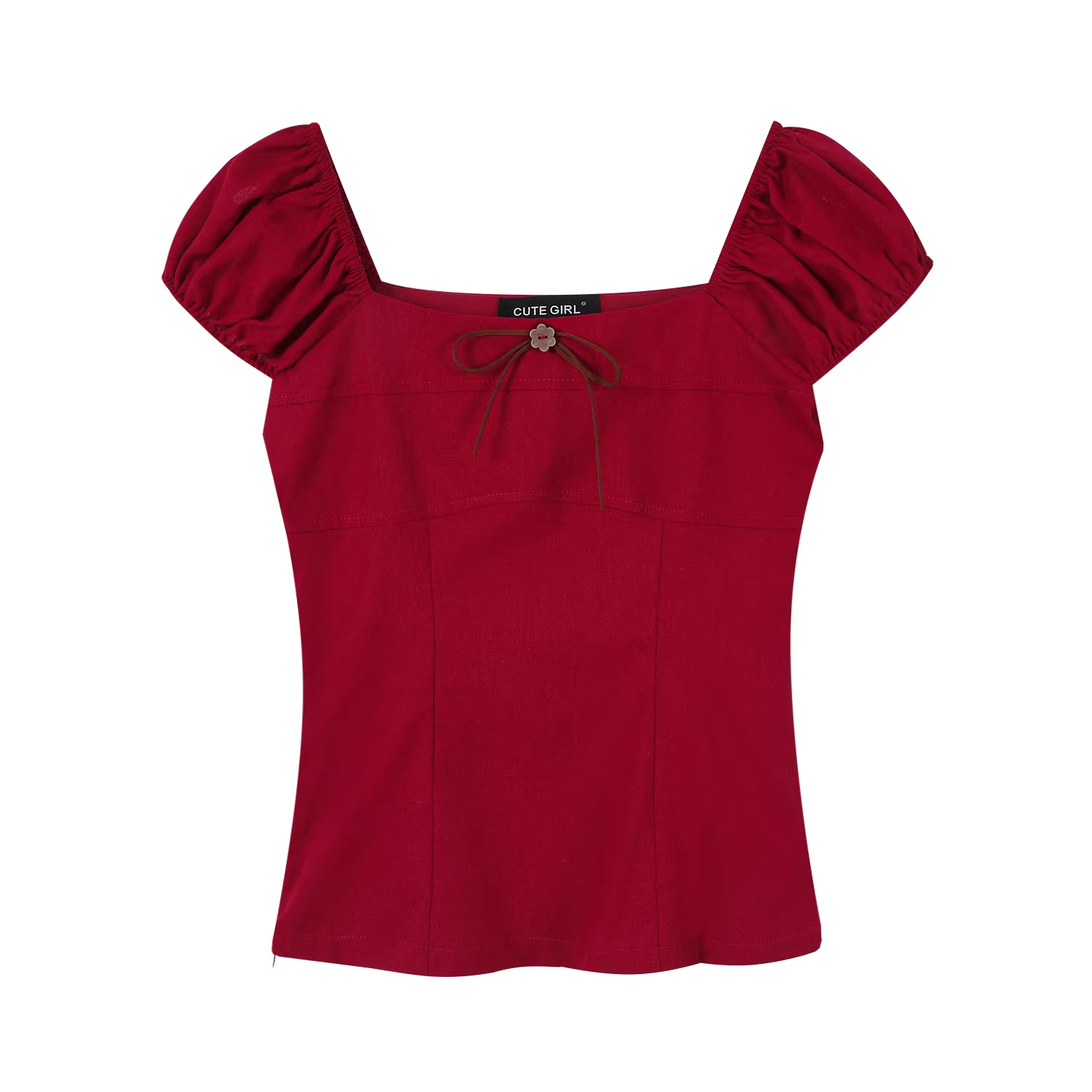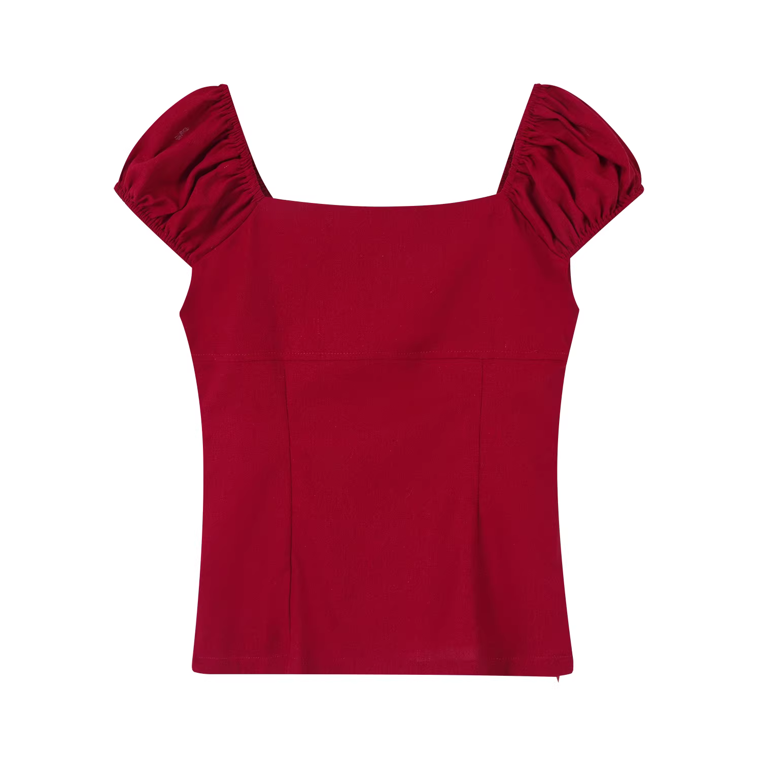 Áo sơ mi ngắn tay cổ vuông màu đỏ phong cách Hàn Quốc dễ thương dành cho nữ, áo ngắn tay ôm sát mùa hè