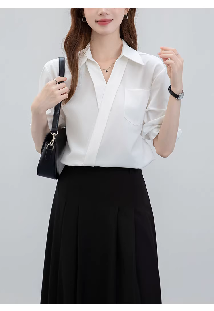 - Áo sơ mi ngắn tay kiểu Pháp La Chapelle dành cho nữ, mẫu mới mùa hè 2025, siêu thời trang, thích hợp đi làm và trang phục công sở.