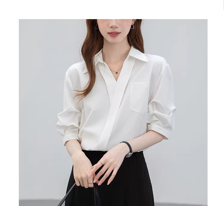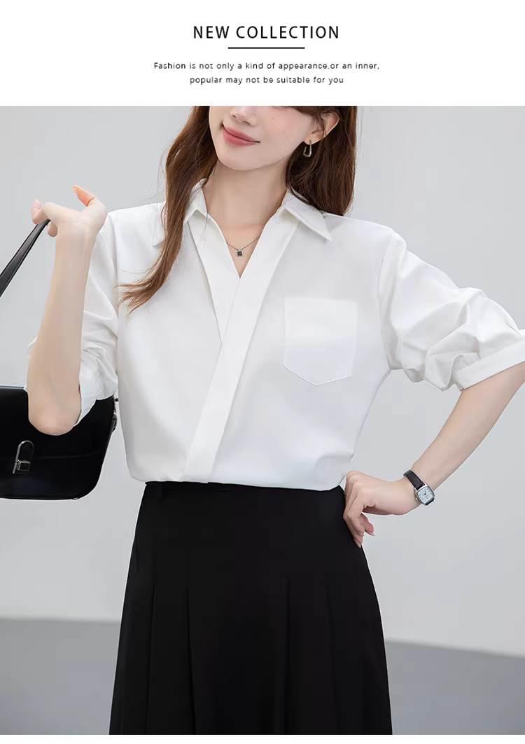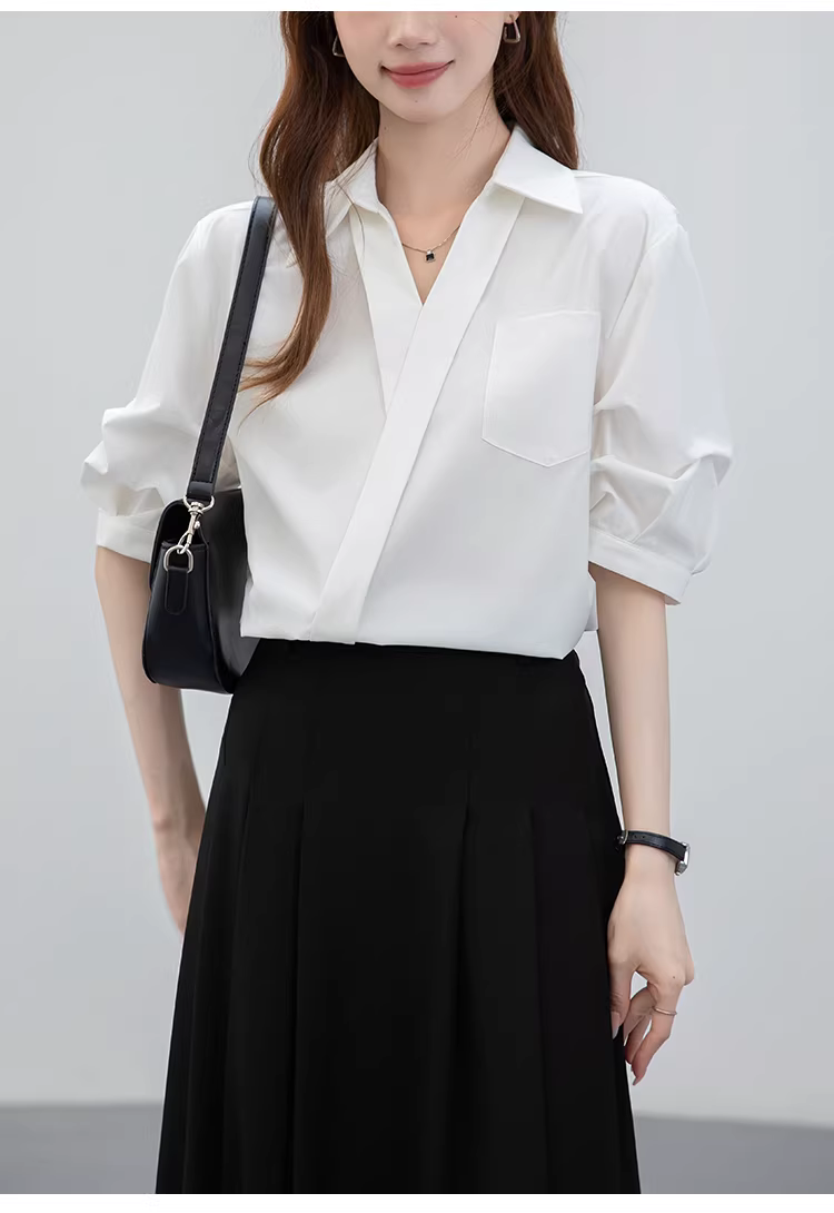 Áo sơ mi ngắn tay kiểu Pháp La Chapelle dành cho nữ, mẫu mới mùa hè 2025, siêu thời trang, thích hợp đi làm và trang phục công sở.