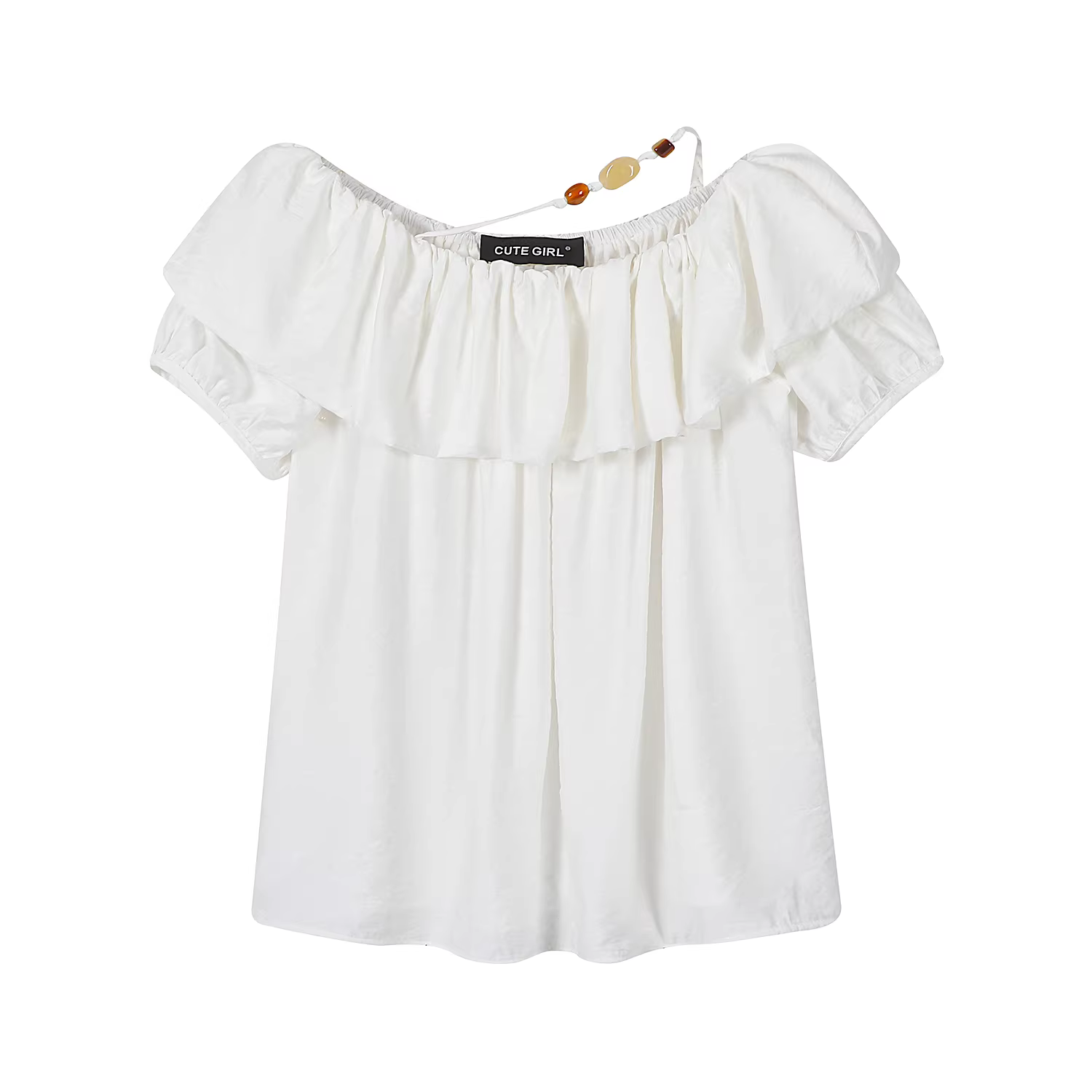 - Áo sơ mi ngắn tay lệch vai màu trắng giảm tuổi tác phong cách dễ thương dành cho nữ mùa hè kiểu Pháp độc đáo và đẹp mắt