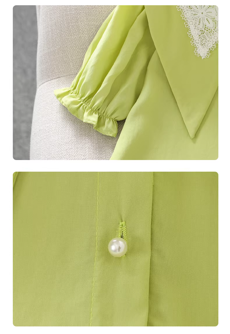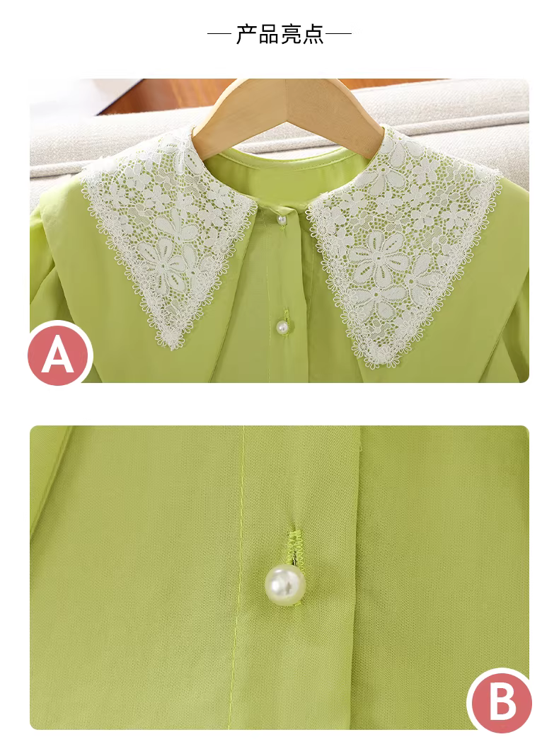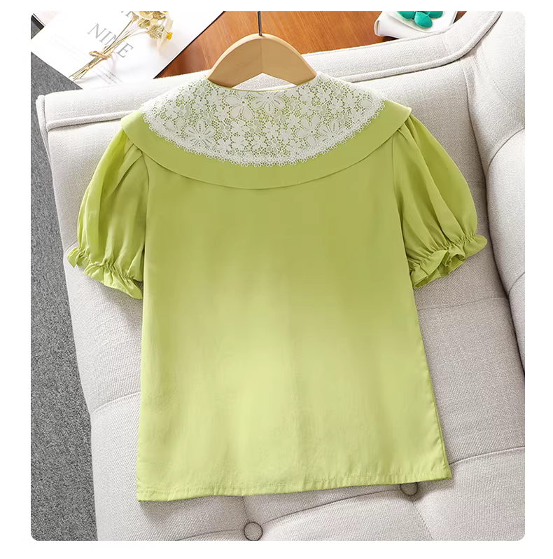 - Áo sơ mi ngắn tay mùa hè 2025 kiểu mới cho bé gái, áo voan cổ búp bê, áo kiểu cách tay bồng cho bé lớn