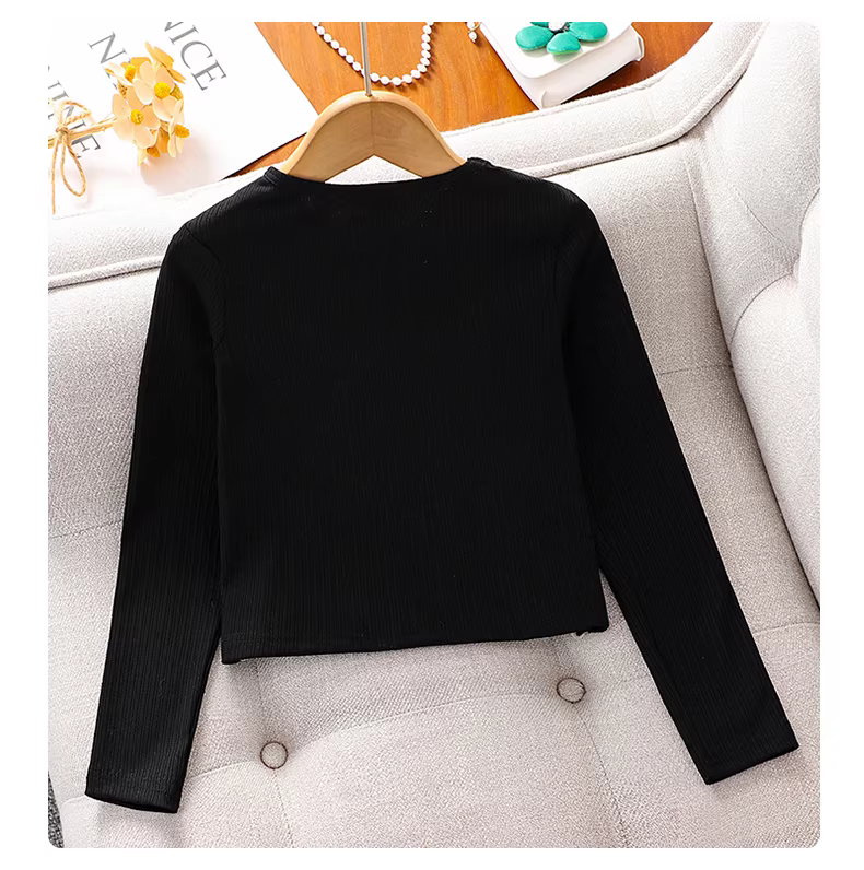 - Áo sơ mi ngắn tay ren cho bé gái, quần áo xuân thu, áo thun yếm dài tay kiểu trẻ em mới 2025, áo bé gái mùa thu.