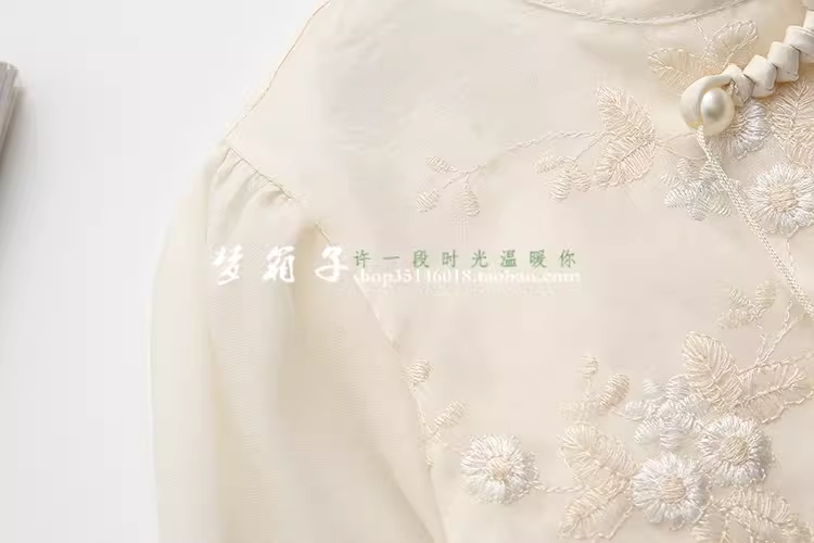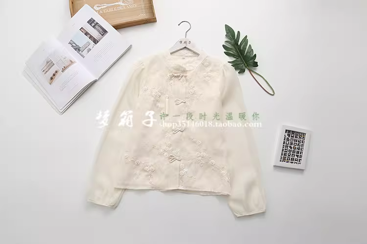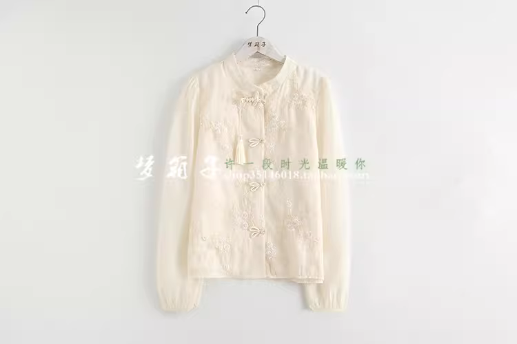- Áo sơ mi nữ cổ đứng tay phồng thêu họa tiết vintage phong cách Trung Hoa mới Xuân 2024 Dream Box