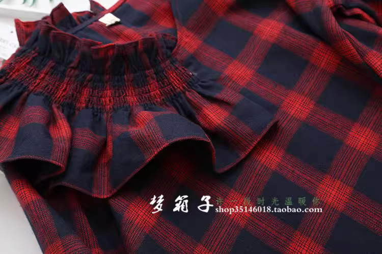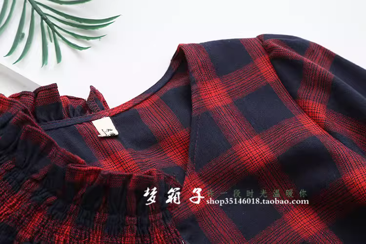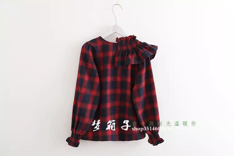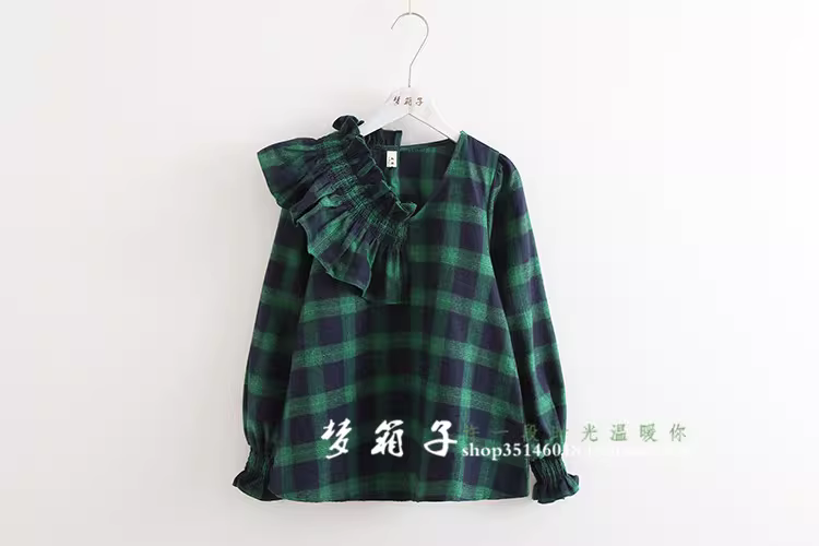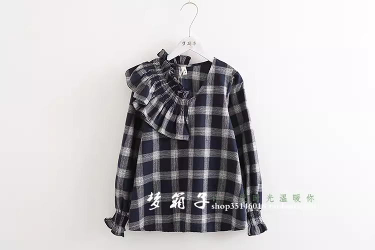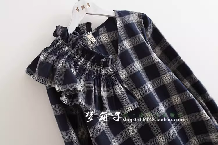 - Áo sơ mi nữ cotton kẻ caro kiểu dáng mới Dream Box 2025, cổ bèo tay phồng, đa năng, rộng rãi, phong cách retro.