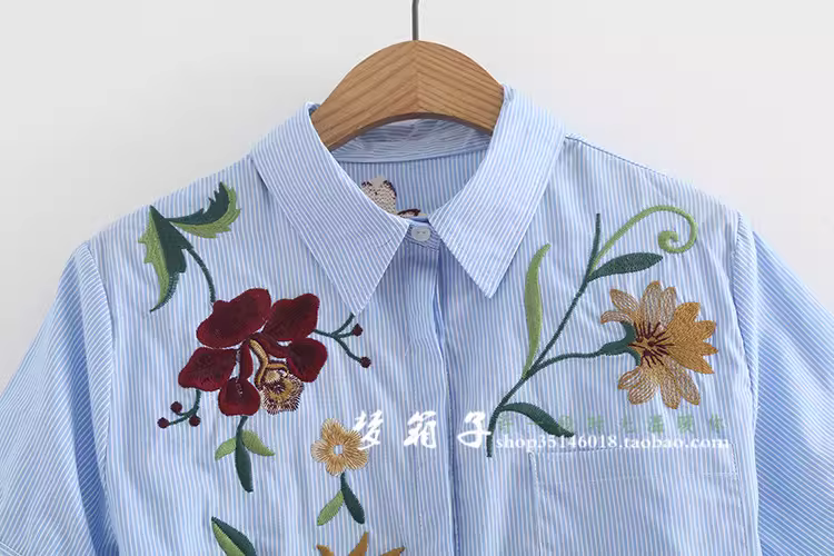 纯棉面料,美美的重工刺绣绣花,尖角翻领,宽松休闲的款