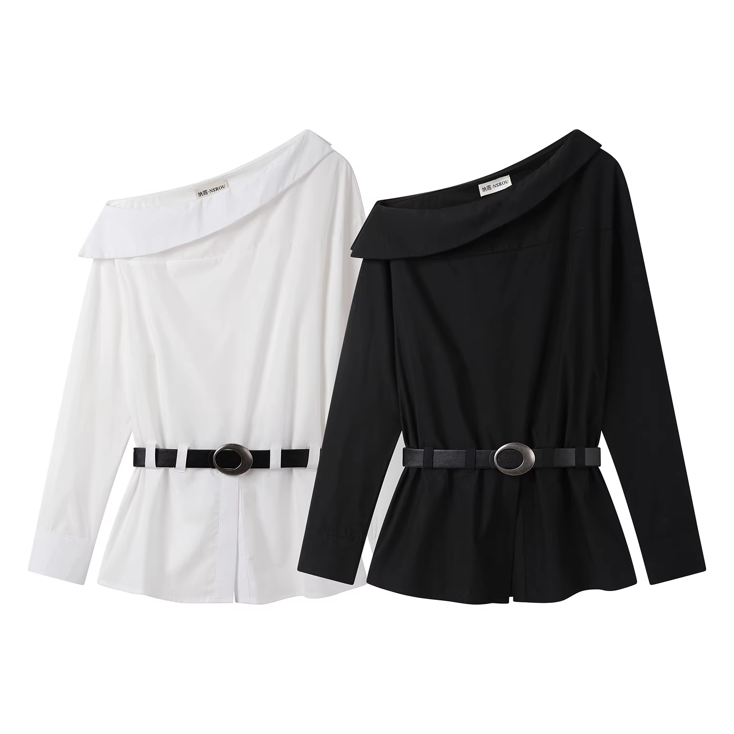- Áo sơ mi nữ kiểu Pháp thanh lịch và sang trọng, kiểu dáng ôm eo tôn dáng, áo kiểu bất đối xứng vai lệch mùa thu.