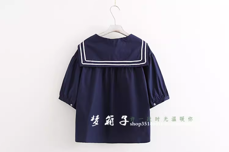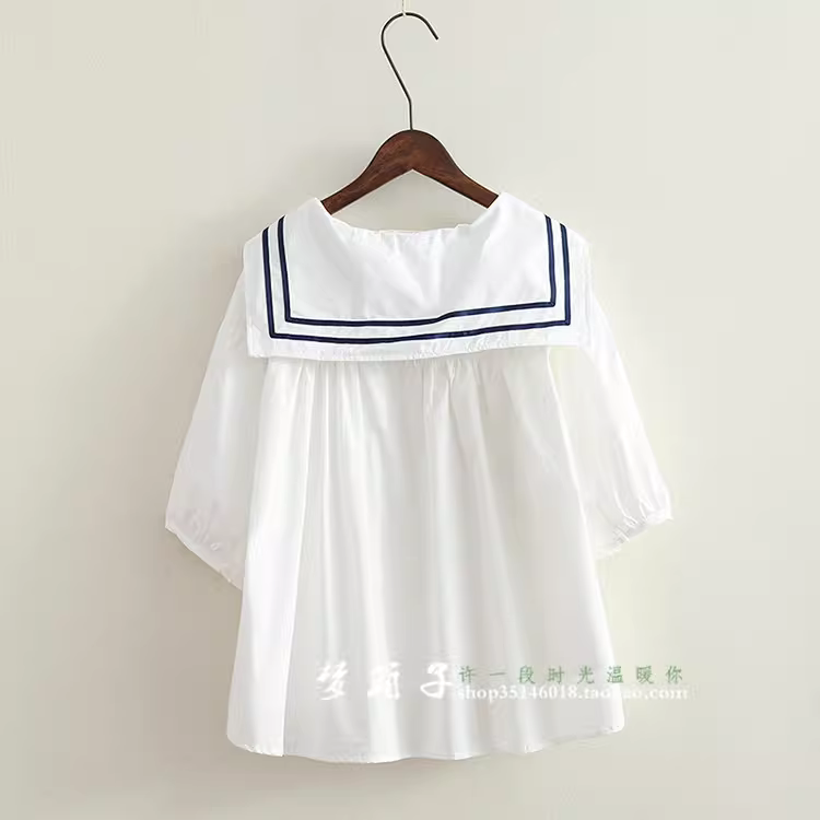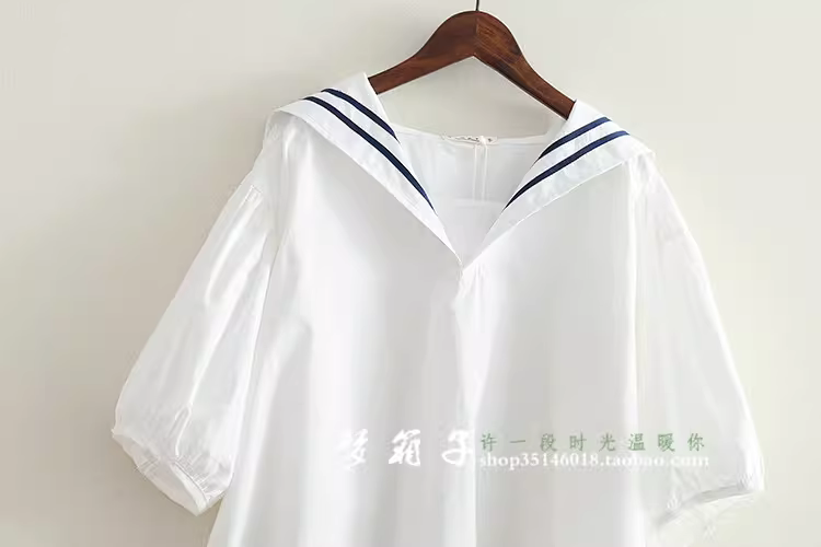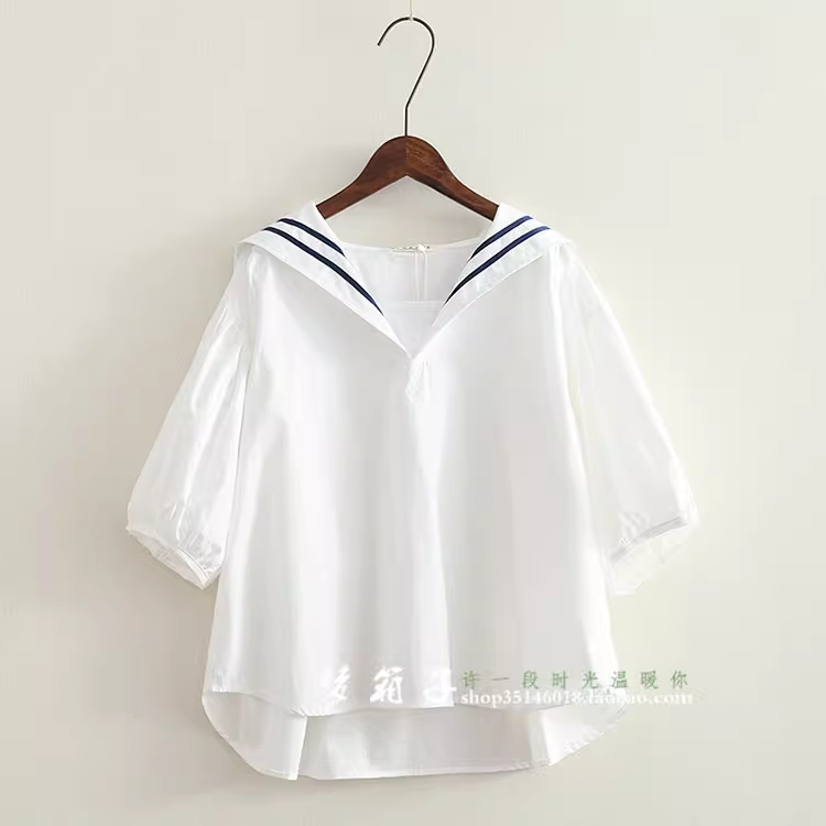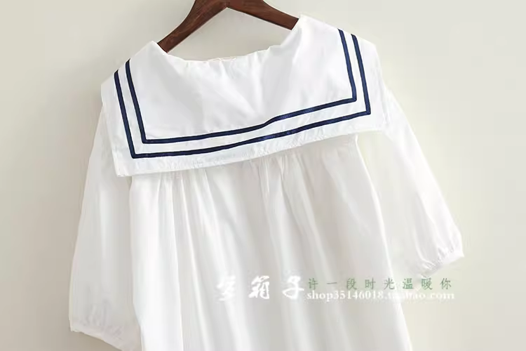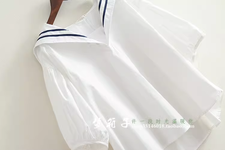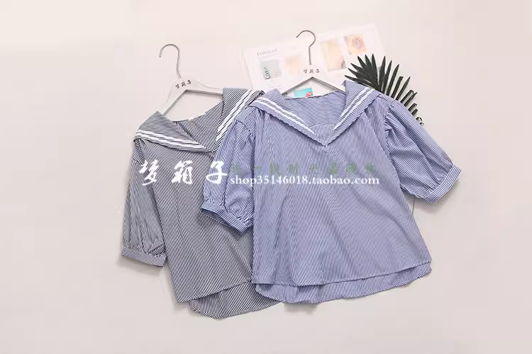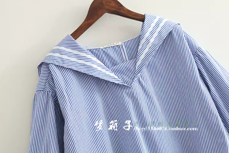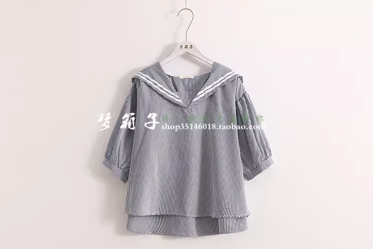 - Áo sơ mi nữ phong cách hải quân mùa hè Dream Box 2024, áo sơ mi dáng rộng cổ thủy thủ phối sọc, áo sơ mi size lớn.