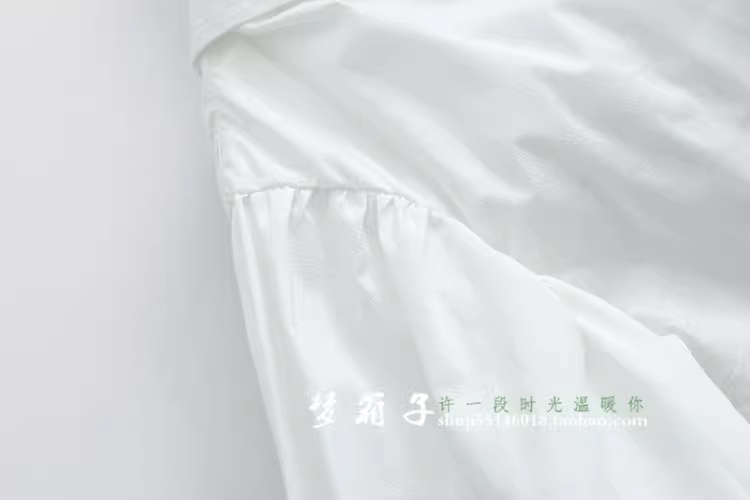 (加蝴蝶结款尺寸):胸围112cm 下摆围134cm 衣前长57后长65cm 袖长20cm 肩宽49cm