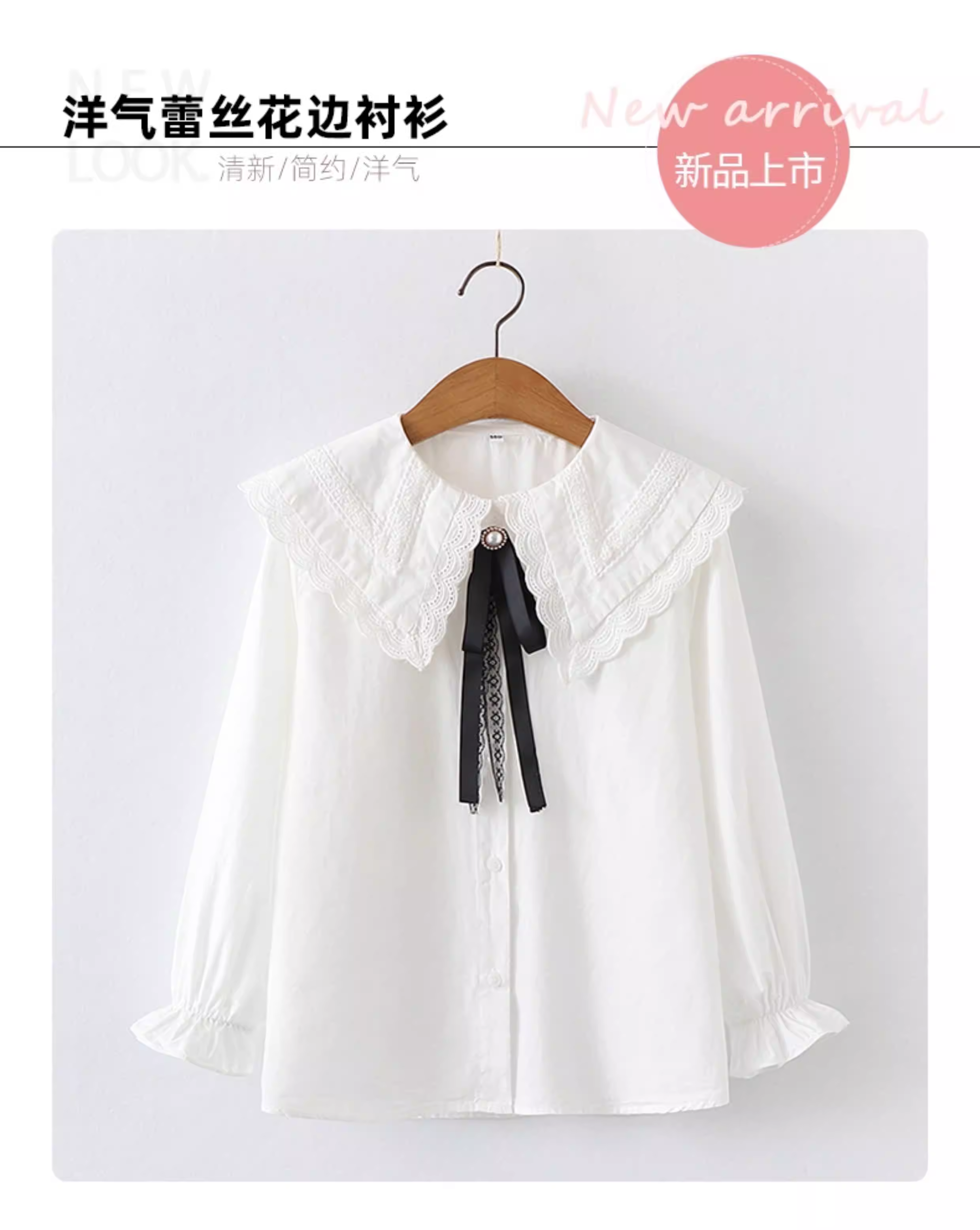 - Áo sơ mi nữ xuân thu 2025, áo sơ mi trắng cổ búp bê thời trang trẻ em, áo cho bé gái lớn, phong cách preppy mặc mùa thu.