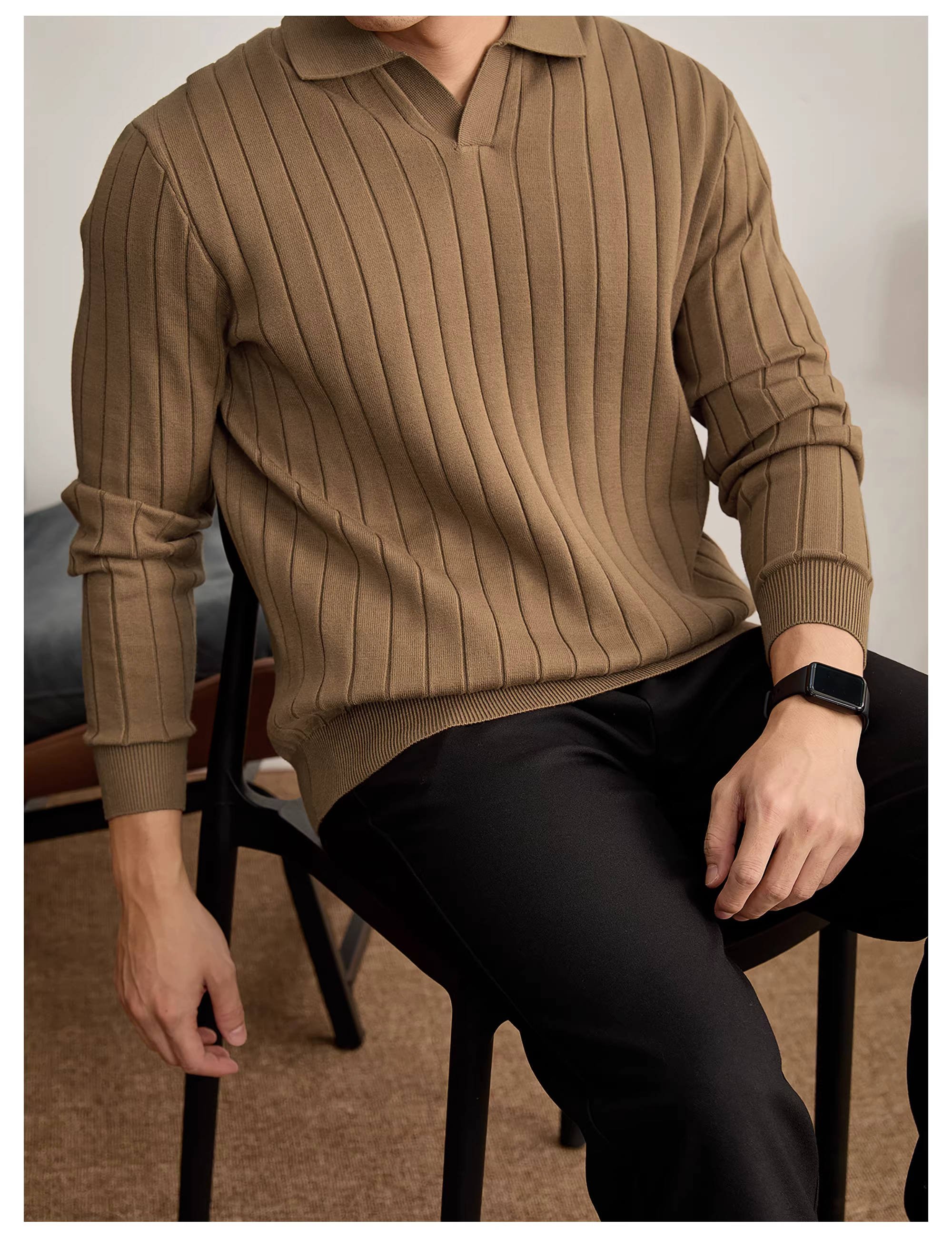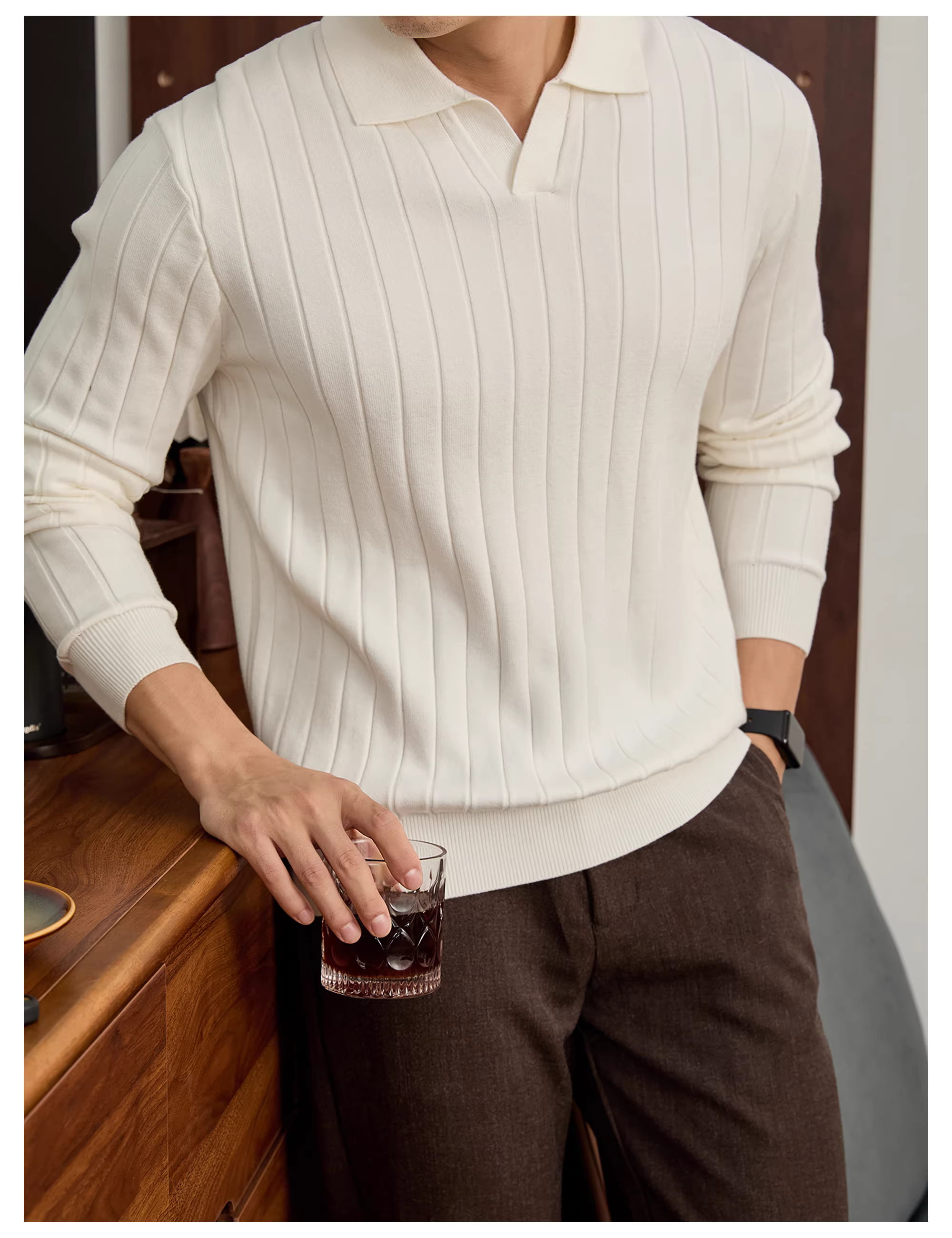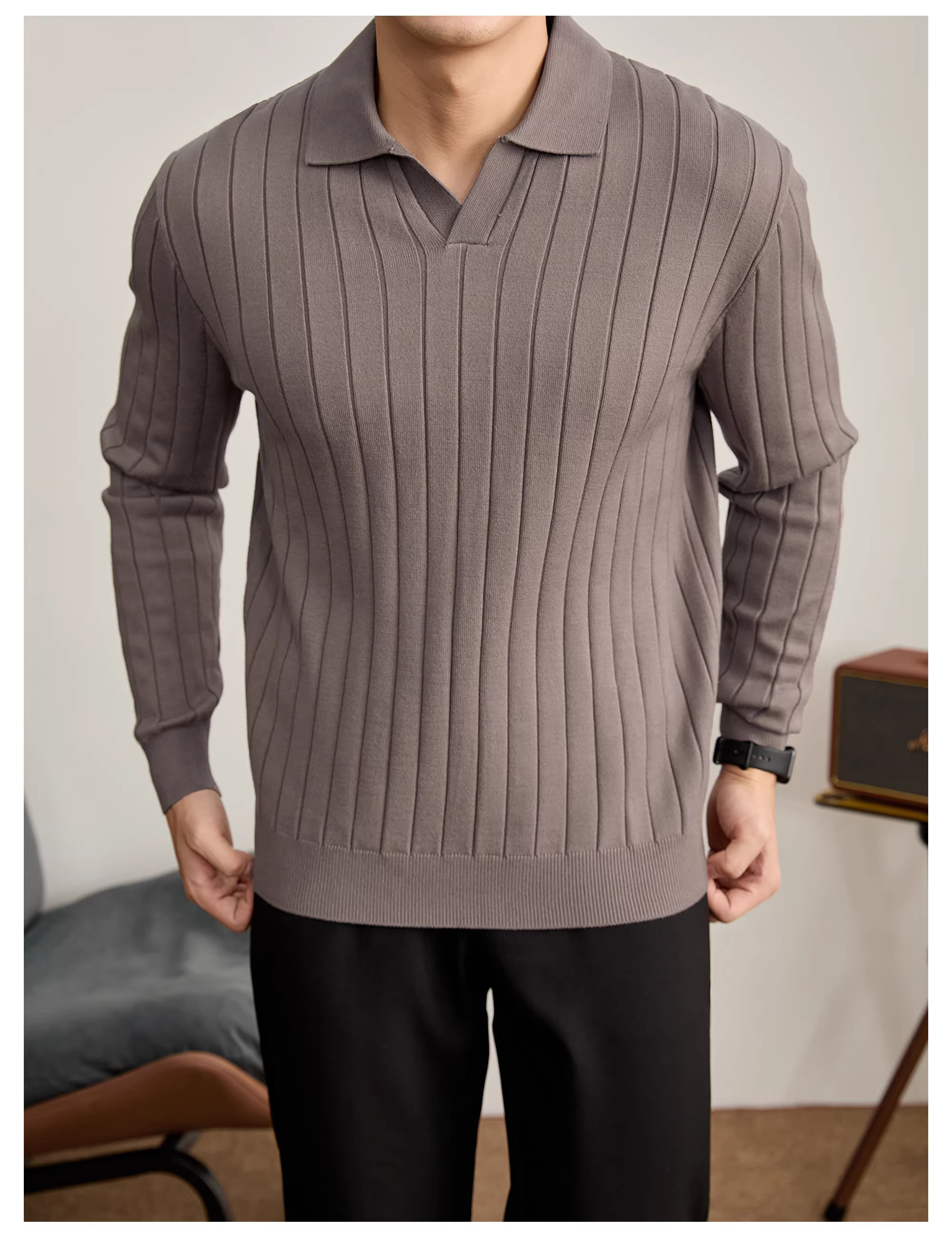 - Áo sơ mi POLO cổ hải âu sang trọng thời trang LUUD dành cho nam với sọc dọc, chất liệu dệt kim màu trơn đa năng, kiểu dáng ôm sát.