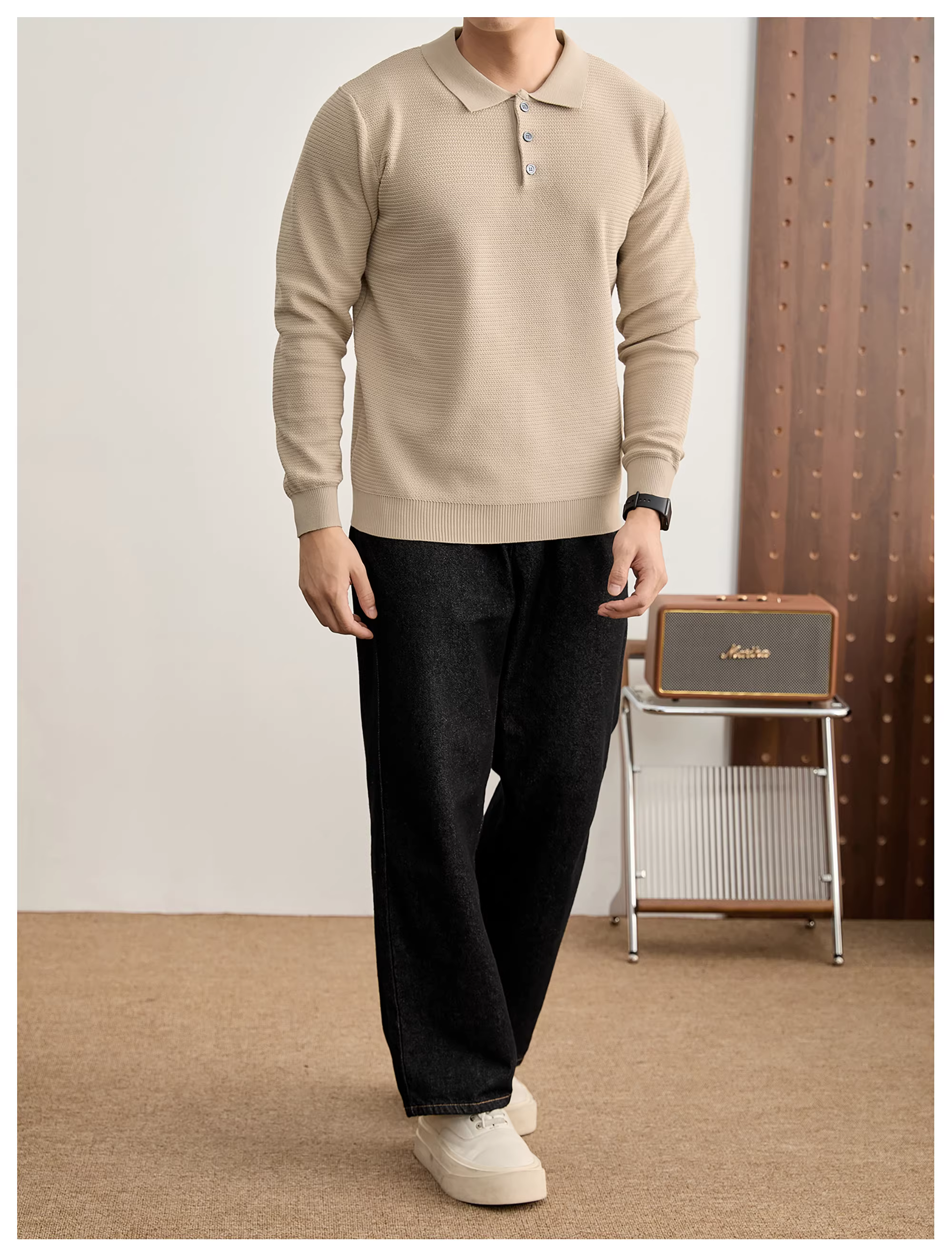Áo sơ mi POLO dài tay nam LUUD thanh lịch và thanh lịch mùa thu đông có họa tiết gân cổ áo dệt kim