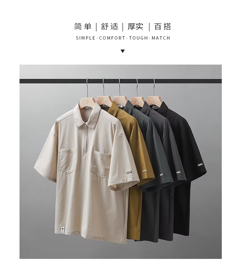 Áo sơ mi POLO kiểu núi Mỹ thuần túy dành cho nam, áo sơ mi công sở ngắn tay mùa hè nhanh khô, áo thun nửa khóa kéo CityBoy dáng rộng