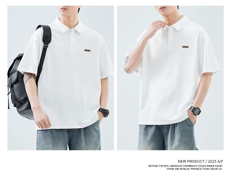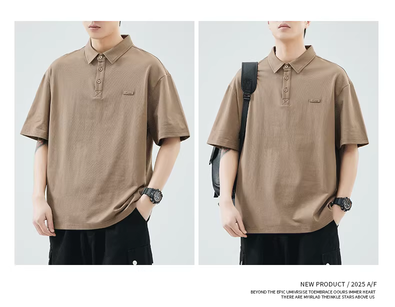 Áo sơ mi POLO ngắn tay hạng nặng kiểu Mỹ của OMZM dành cho nam, áo thun có cổ cao cấp mùa hè, áo polo nửa tay rộng màu đen