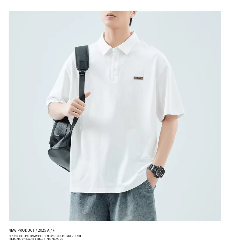 - Áo sơ mi POLO ngắn tay hạng nặng kiểu Mỹ của OMZM dành cho nam, áo thun có cổ cao cấp mùa hè, áo polo nửa tay rộng màu đen
