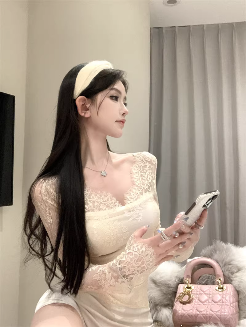 Áo sơ mi ren đen dành cho nữ, áo sơ mi dài tay mùa xuân, mùa thu và mùa đông dành cho nữ, áo khoét hở gợi cảm dành cho phụ nữ trẻ, đặc biệt là áo xuyên thấu