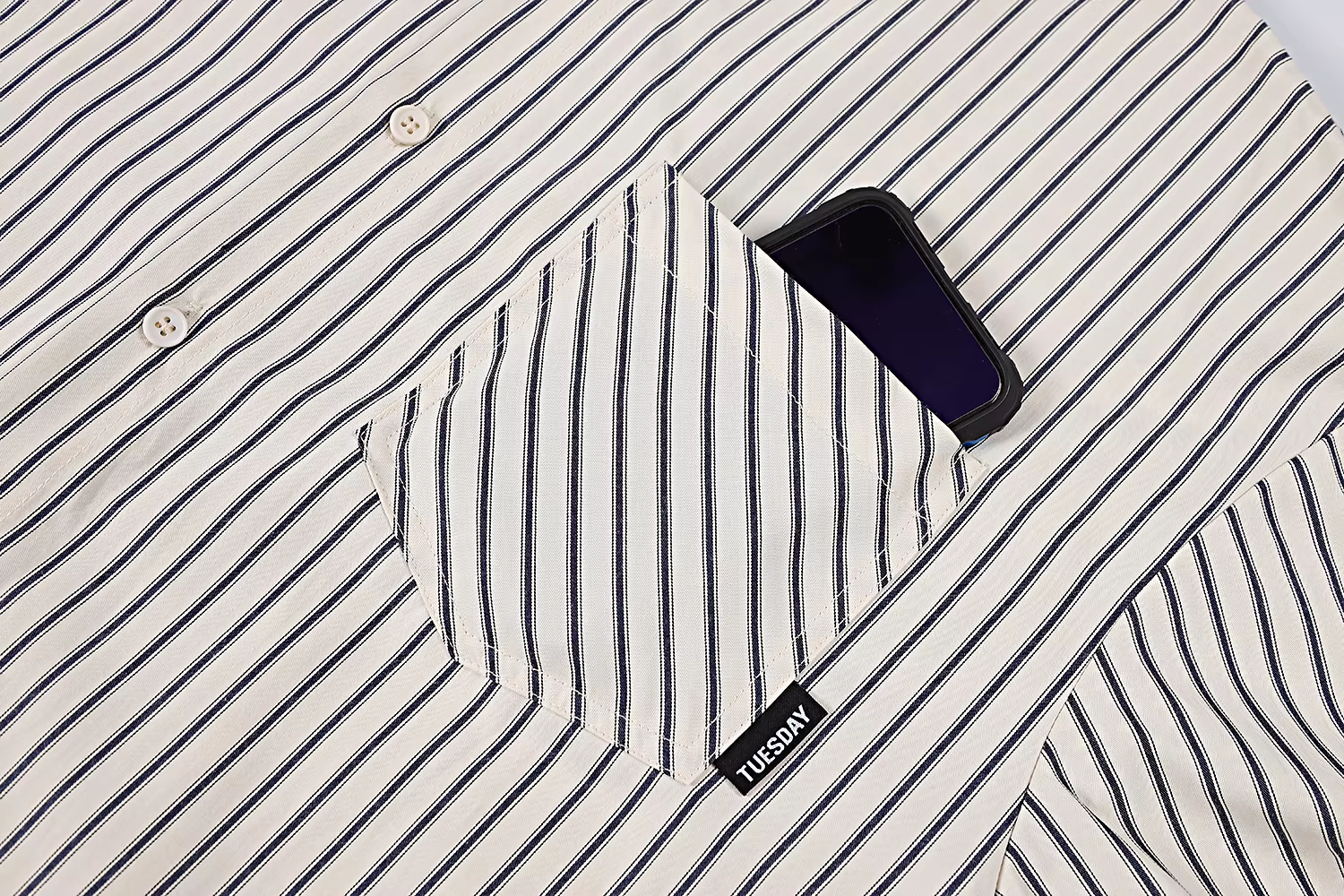 - Áo sơ mi sọc cổ polo phong cách CuteGirl có khăn choàng cho nữ, áo sơ mi dáng rộng thanh lịch mùa thu, đa năng