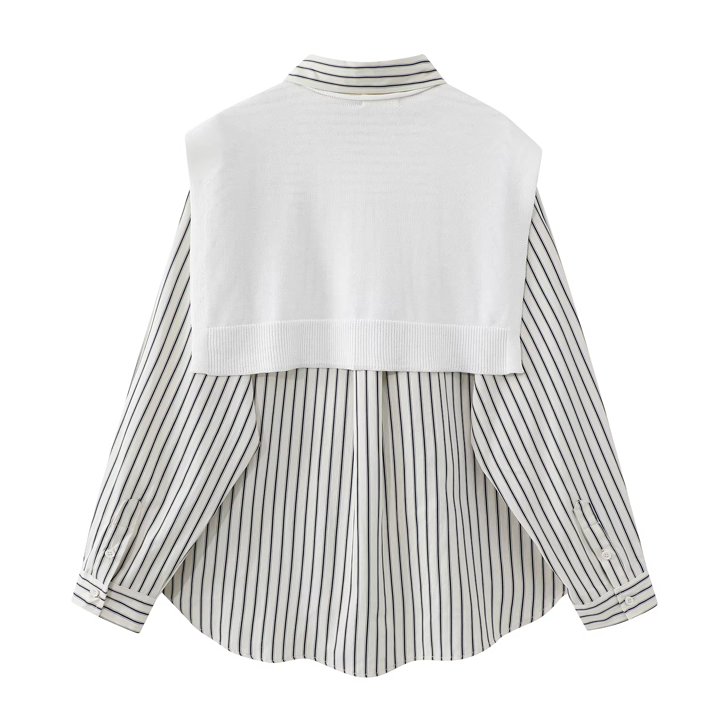 Áo sơ mi sọc cổ polo phong cách CuteGirl có khăn choàng cho nữ, áo sơ mi dáng rộng thanh lịch mùa thu, đa năng