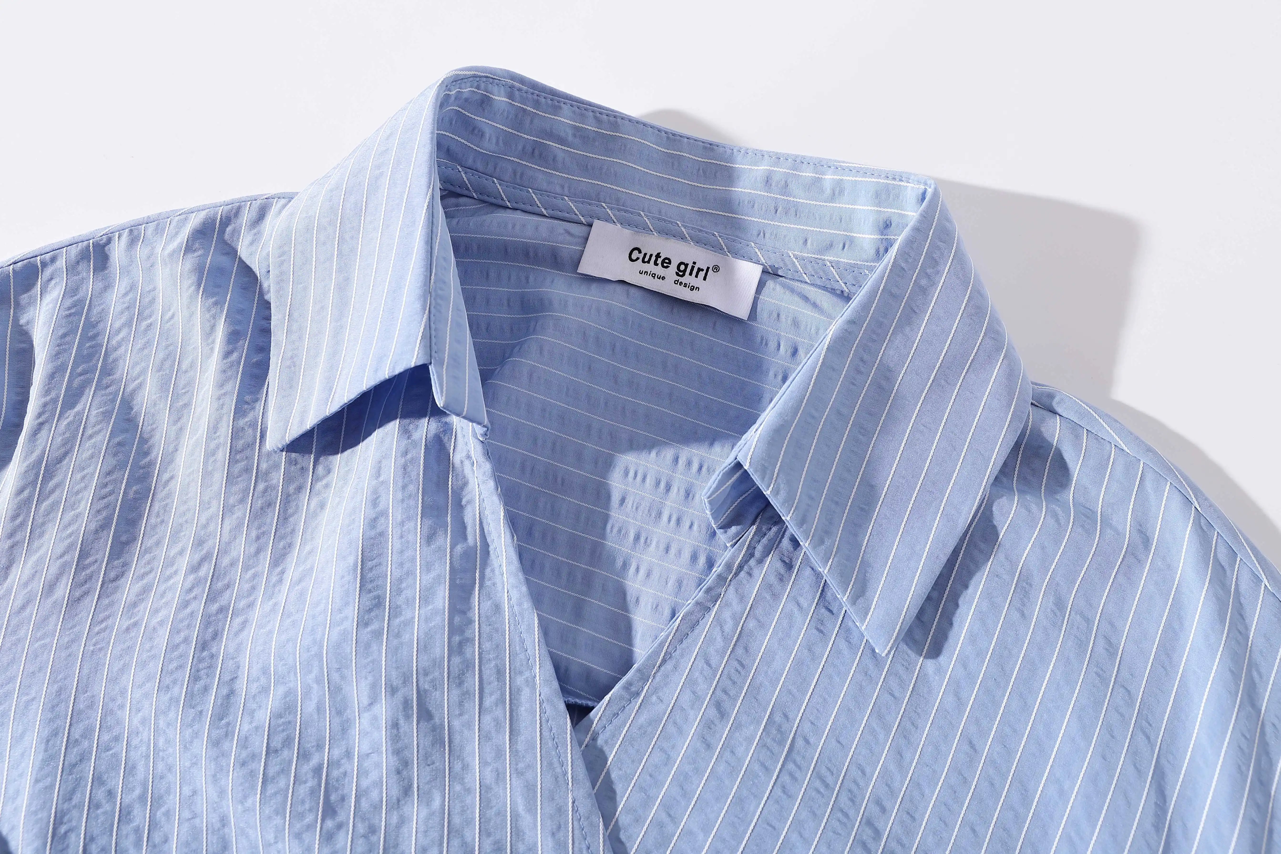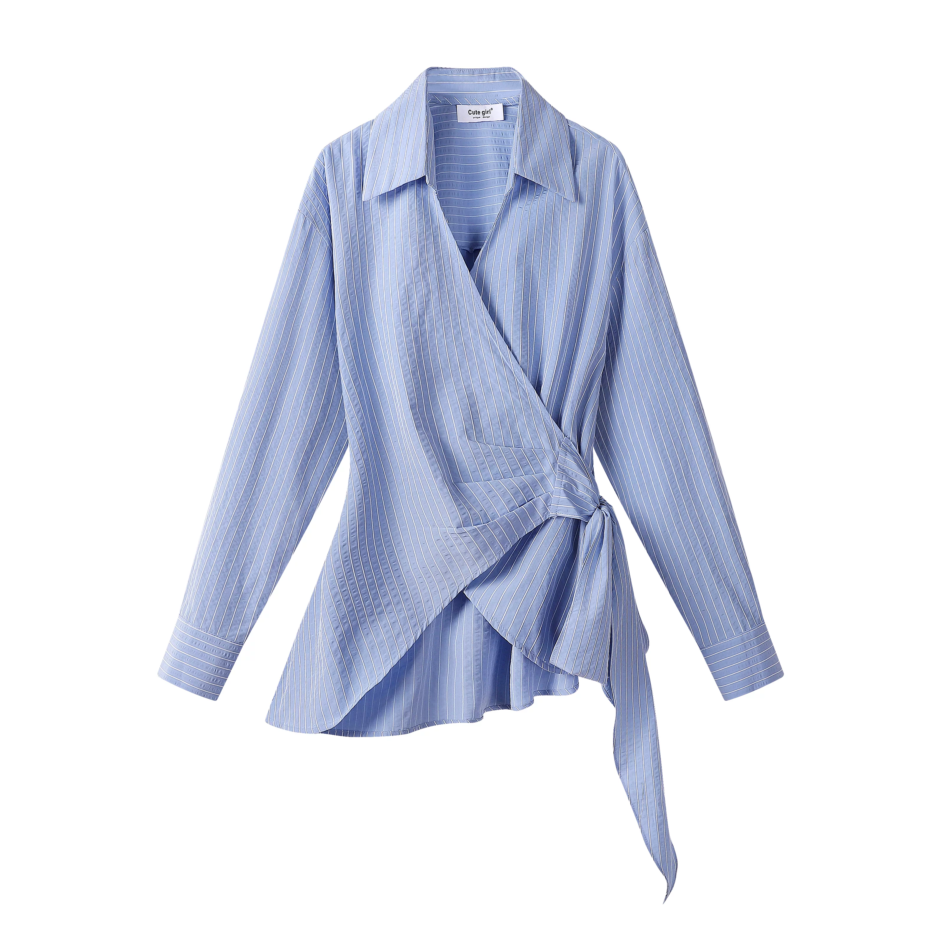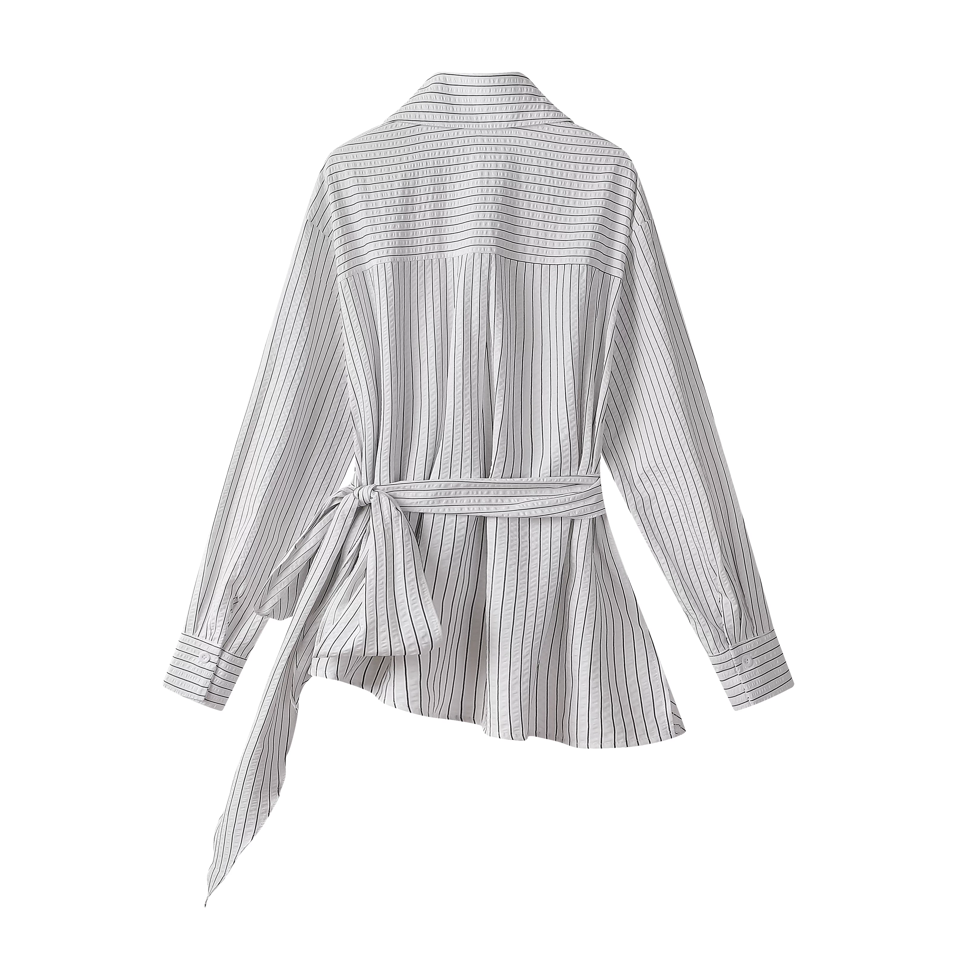 - Áo sơ mi sọc thắt eo kiểu Pháp sang trọng kiểu Pháp dành cho nữ, áo kiểu thanh lịch mùa xuân