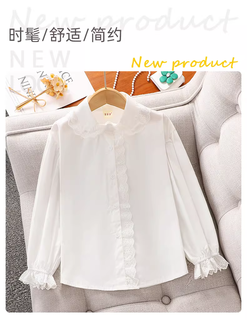 - Áo sơ mi trắng mùa thu cho bé gái, áo kiểu Hàn Quốc thường ngày cho bé gái lớn, áo dài tay trẻ em mùa xuân thu 2025 mới