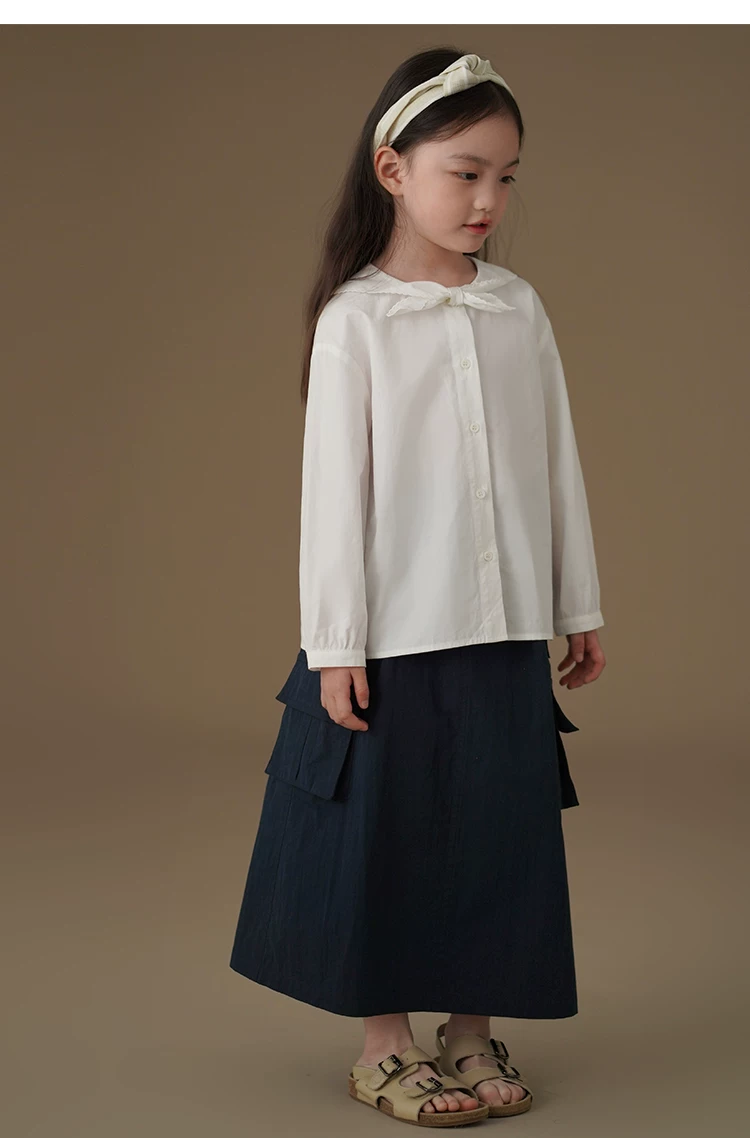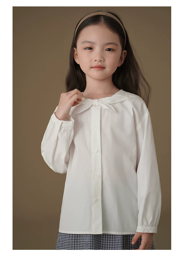 - Áo sơ mi trắng trẻ em, xuân thu, phong cách preppy, áo dài tay cao cấp, quần áo thu đông bé gái, mẫu mới 2025