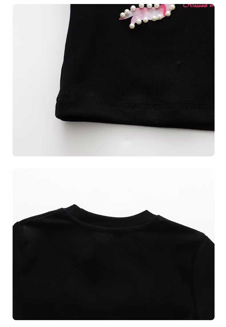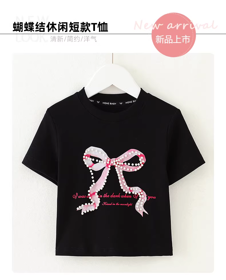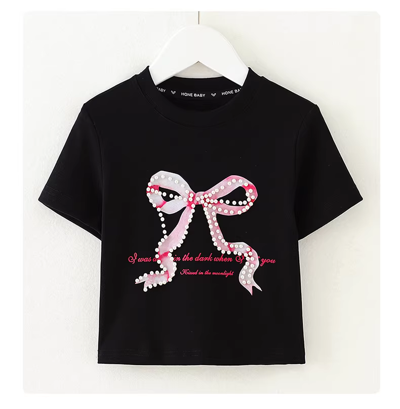 - Áo thun bé gái tay ngắn kiểu mới hè 2025, áo kiểu dáng xu hướng, áo mỏng, áo thun bé gái lớn mặc hè