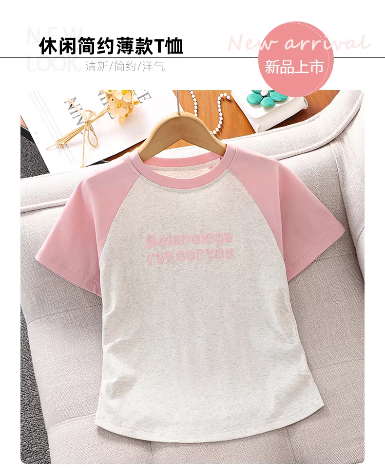 - Áo thun bé gái tay raglan mùa hè kiểu mới 2025, áo thun ngắn tay mùa hè chất liệu mỏng, kiểu dáng trẻ trung, tôn dáng