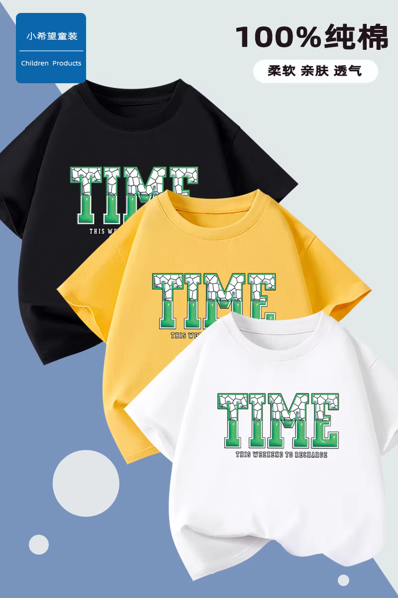- Áo thun bé trai Little Hope chất liệu cotton 100%, kiểu dáng rộng rãi, in họa tiết thời trang mùa hè 2025, cổ tròn, tay ngắn