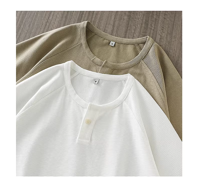 - Áo thun cổ henley hạng nặng kiểu Mỹ dành cho nam, tay ngắn, áo sơ mi thường ngày kiểu Amekaji cổ điển mùa hè, áo henley cao cấp, tay lửng.