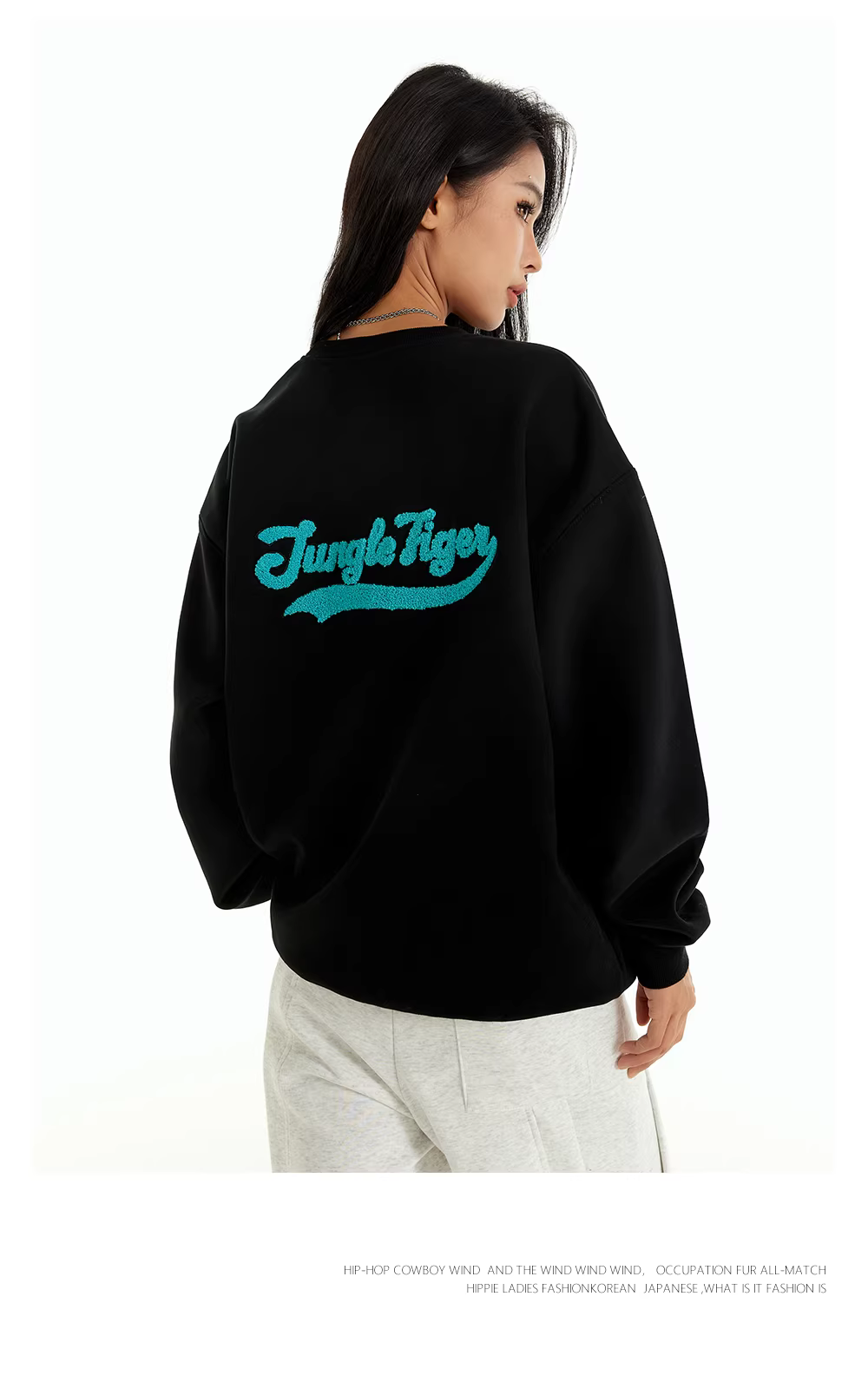 - Áo thun cổ tròn thêu hình hổ rừng phong cách cổ điển, thời thượng, chất liệu dày 420g, dành cho cặp đôi, unisex