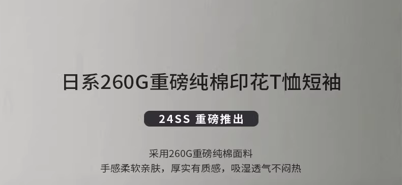 Áo thun cotton 100% dày dặn 260G, tay ngắn mùa hè 2024, kiểu dáng mới in chữ Mỹ, thời trang nam, thương hiệu áo thun trẻ trung phong cách ins