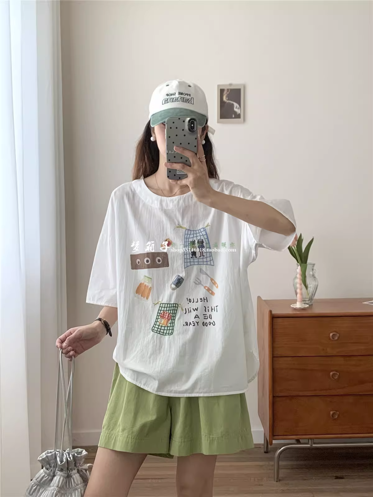 - Áo thun cotton in họa tiết graffiti hoạt hình mùa hè Dream Box 2025, cổ tròn, tay ngắn, dáng rộng, trẻ trung
