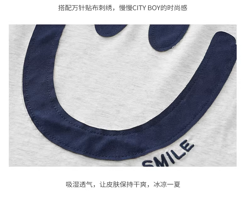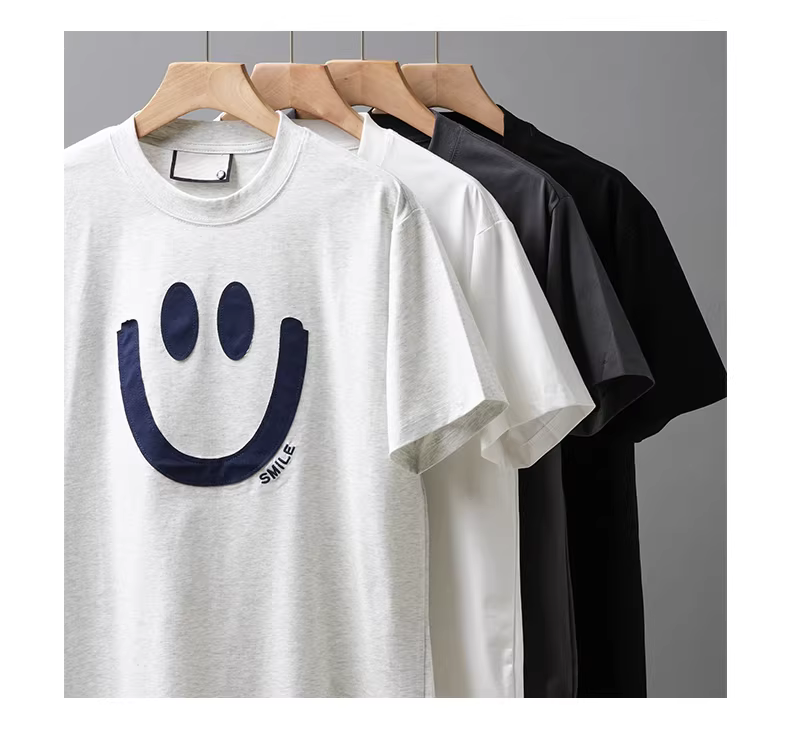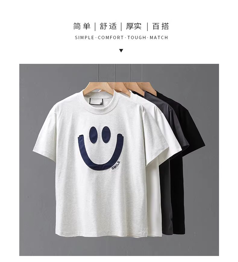 - Áo thun cotton lụa băng hạng nặng dành cho nam, tay ngắn, mùa hè, thêu mặt cười, hợp thời trang, đa năng, dáng rộng, cổ tròn, thoáng khí, áo thun tạo cảm giác mát mẻ.