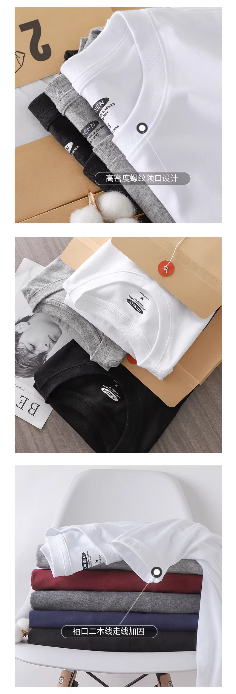 Áo thun cotton nguyên chất 210g, tay dài, dáng rộng, cổ tròn, màu trắng, áo trơn, unisex.