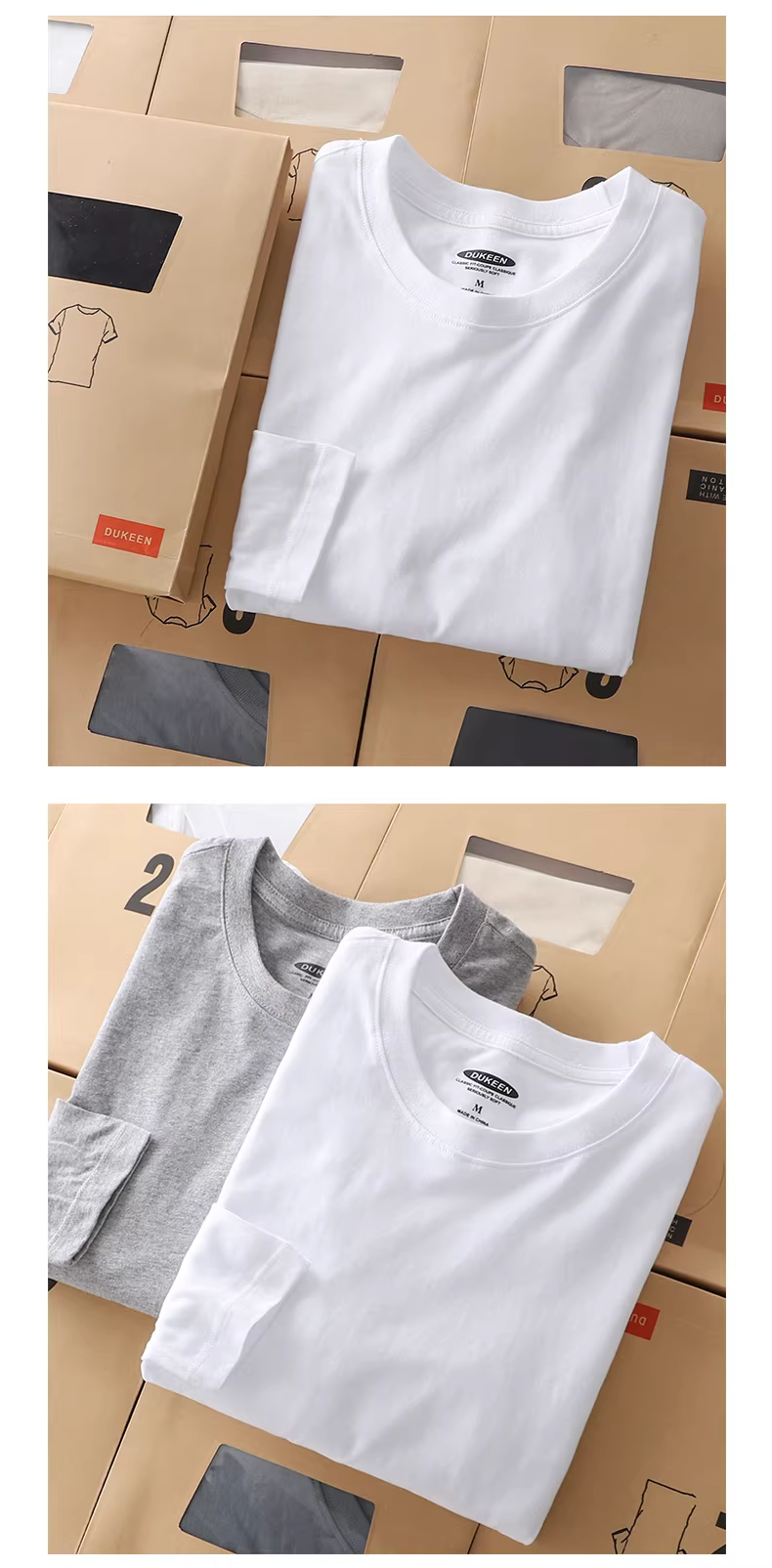 - Áo thun cotton nguyên chất 210g, tay dài, dáng rộng, cổ tròn, màu trắng, áo trơn, unisex.