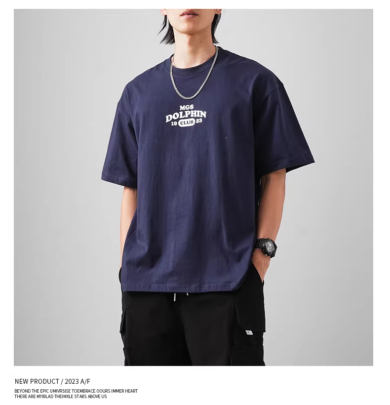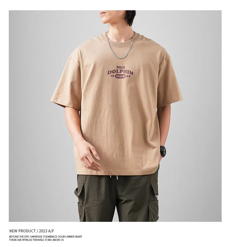 - Áo thun cotton nguyên chất hạng nặng 320G dành cho nam, tay ngắn, mùa hè, áo thun in thương hiệu hợp thời trang dành cho giới trẻ, thoáng khí, dáng rộng, cổ tròn, tay lửng