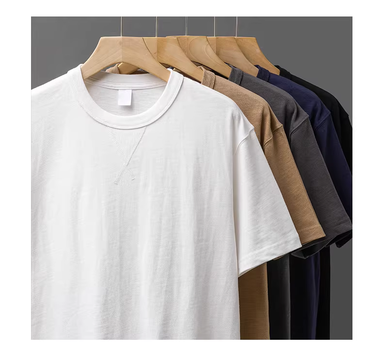 - Áo thun cotton nguyên chất hạng nặng 320G kiểu Mỹ dành cho nam, tay ngắn, áo thun cổ tròn ba kim hình tam giác ngược cổ điển mùa hè dành cho nam