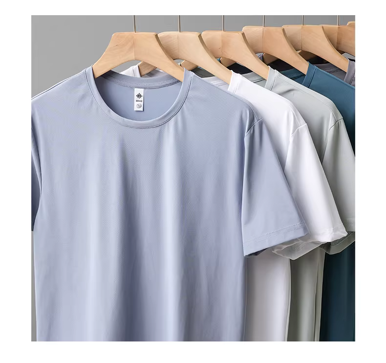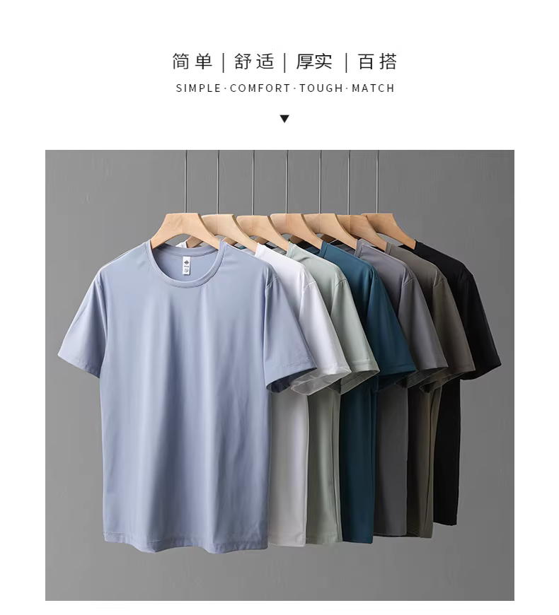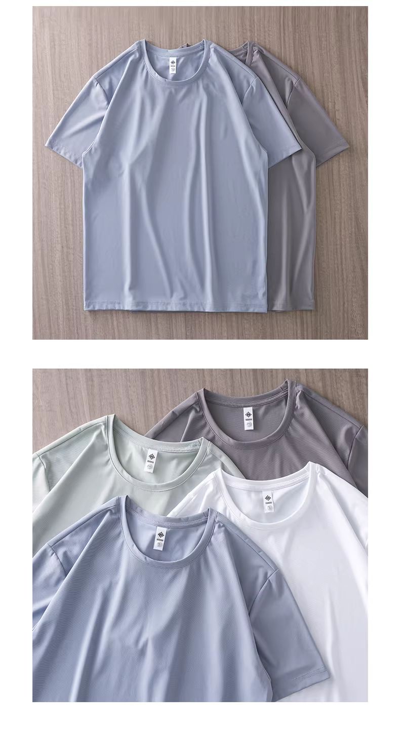 Áo thun cotton pique lụa băng nguyên chất dành cho nam, tay ngắn, kiểu dáng mùa hè nhẹ nhàng, cổ tròn, màu trơn, thoáng khí, nhanh khô, áo lót nửa tay.