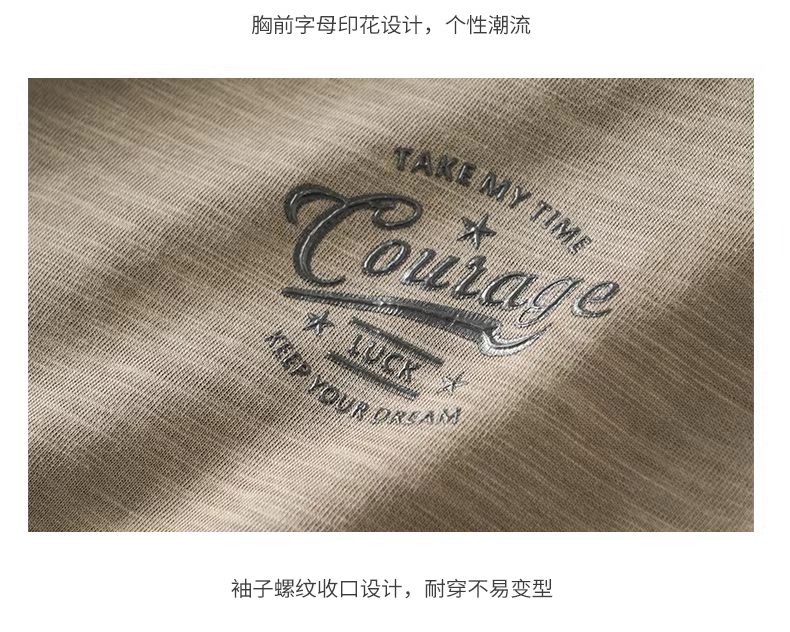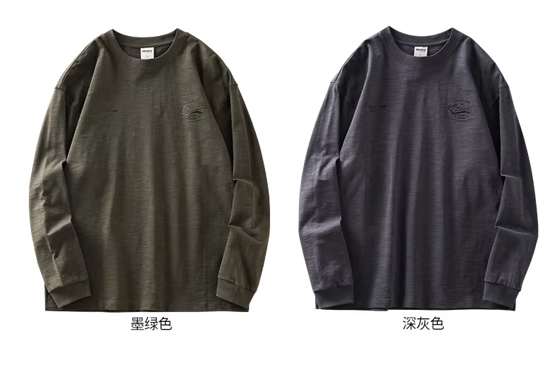 - Áo thun cotton tre nặng 260G dành cho nam, dài tay, mùa xuân thu, áo thun cotton nguyên chất thêu cổ điển kiểu Mỹ, áo sơ mi cổ tròn, hợp thời trang.