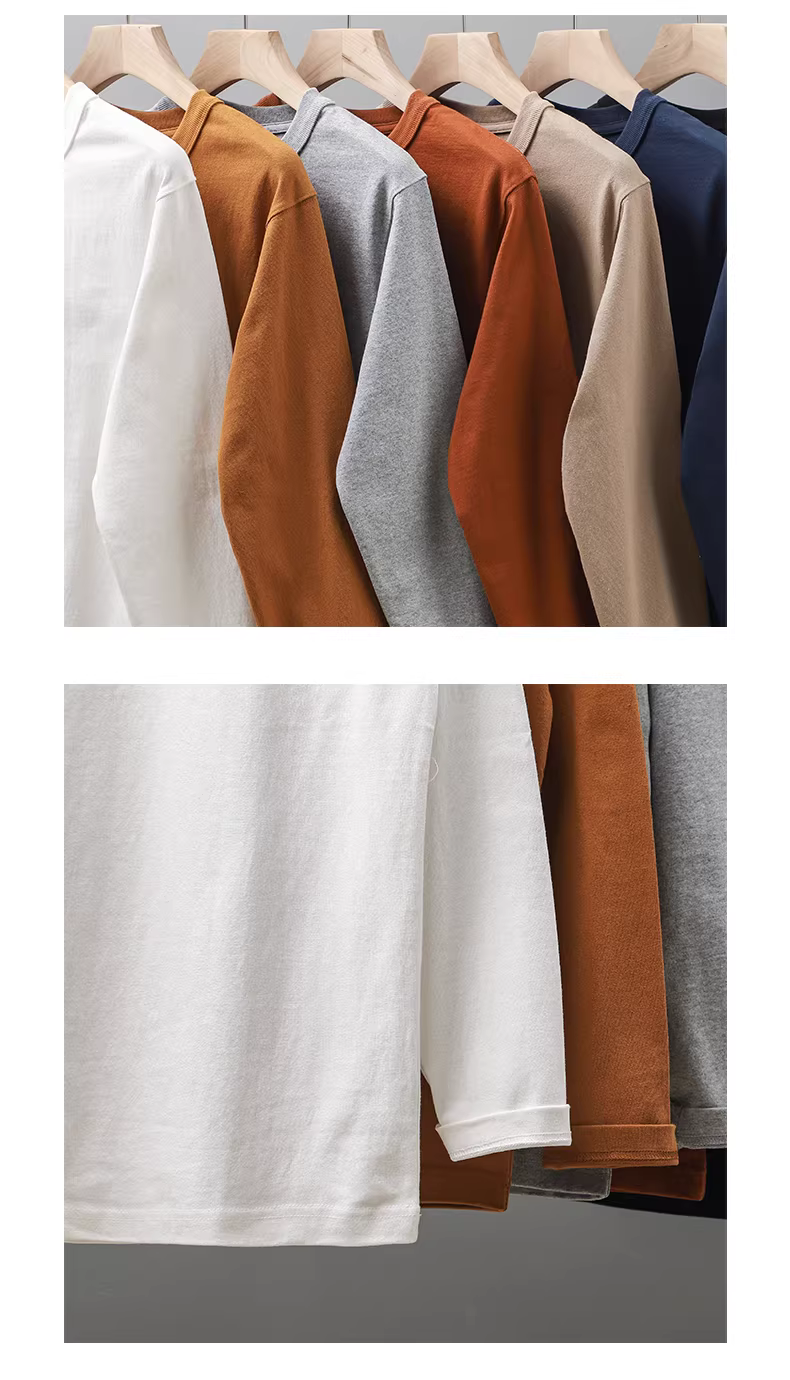 - Áo thun dài tay 100% cotton hạng nặng 320G dành cho nam, cổ tròn dày, áo nỉ ba đường may, áo sơ mi màu trắng tinh khiết phong cách Mỹ mùa thu