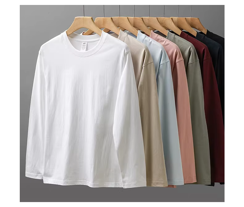 - Áo thun dài tay bằng cotton nguyên chất Tân Cương hạng nặng 260G dành cho nam, áo len cổ tròn dáng rộng mùa thu đông, lớp lót màu trắng dành cho nữ.