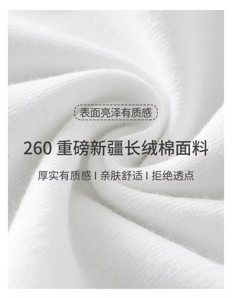 Áo thun dài tay bằng cotton nguyên chất Tân Cương hạng nặng 260G dành cho nam, áo len cổ tròn dáng rộng mùa thu đông, lớp lót màu trắng dành cho nữ.