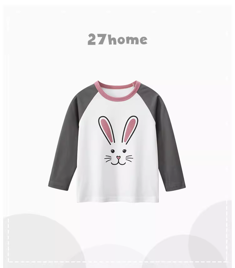 - Áo thun dài tay bé gái 2025 xuân đông kiểu mới áo thun cotton nguyên chất in hình hoạt hình cổ tròn tay raglan