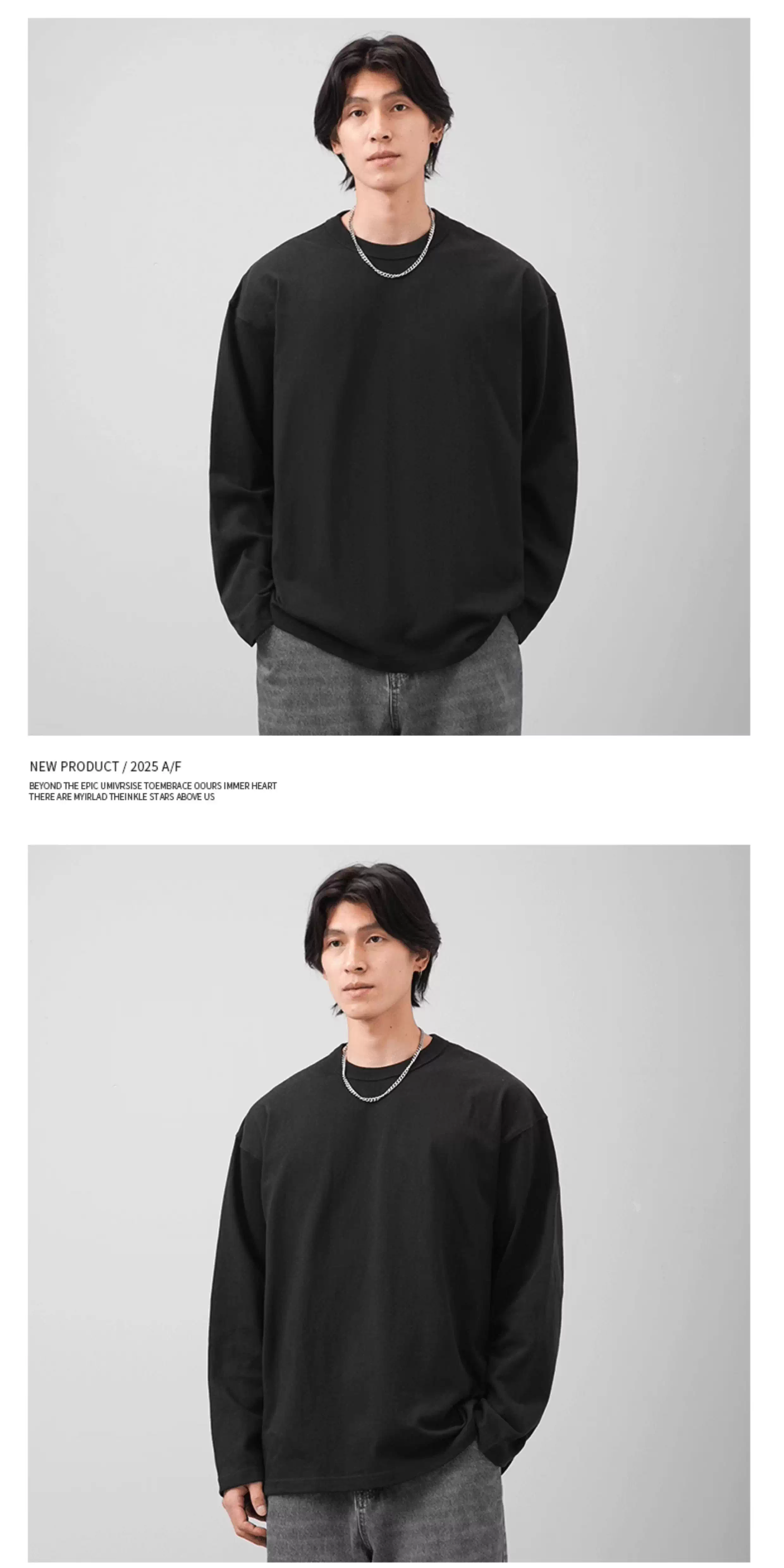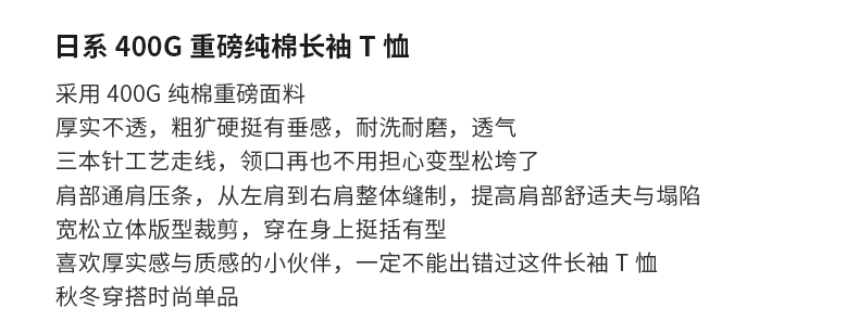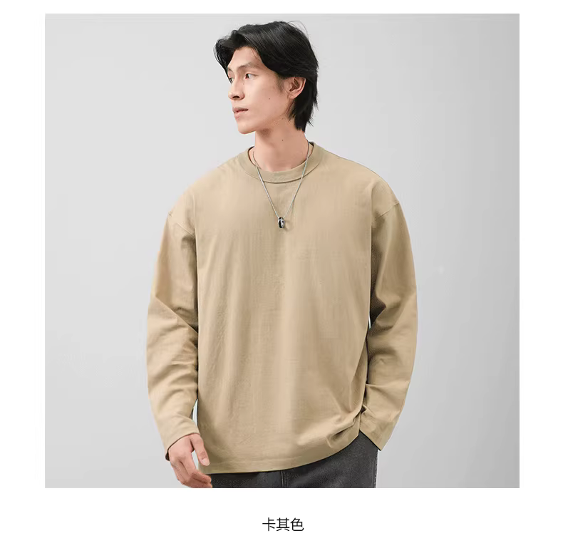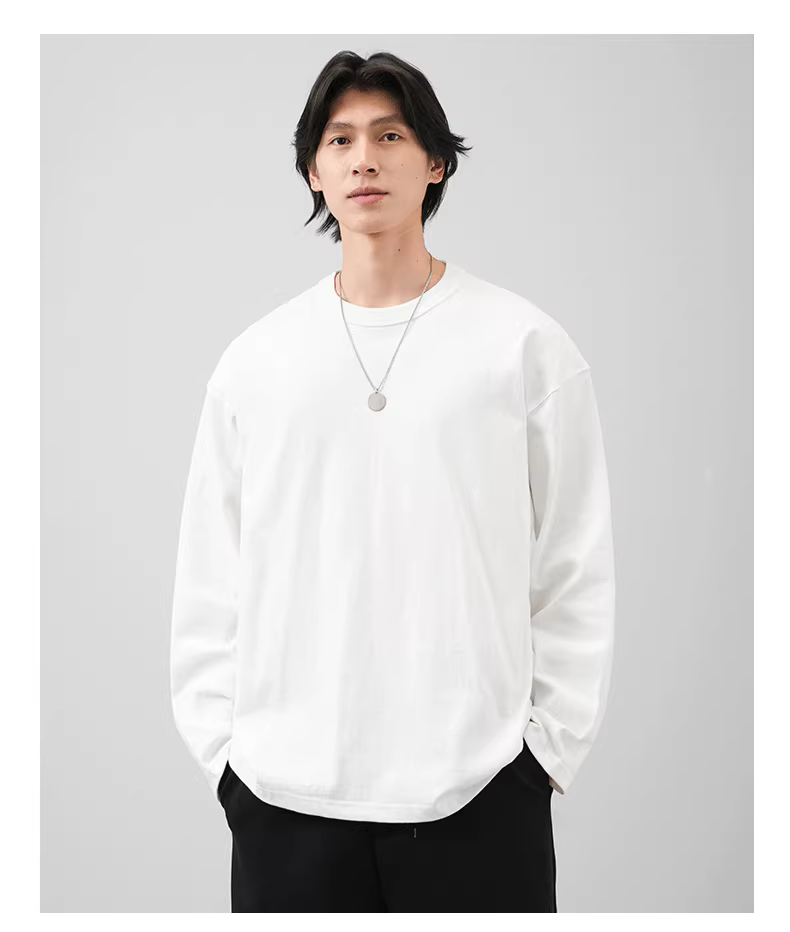 - Áo thun dài tay chất liệu cotton nguyên chất 400G dành cho nam, mùa thu đông, áo dày may ba đường chỉ, áo lót màu trắng.