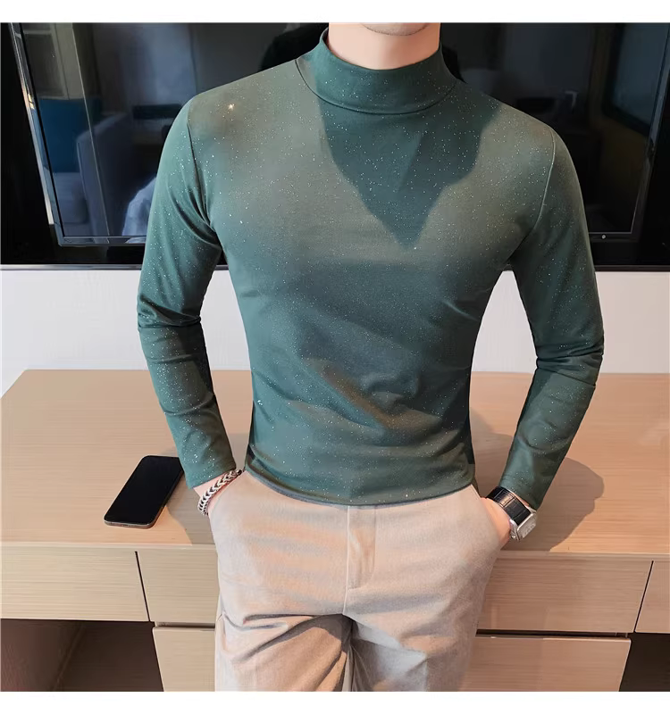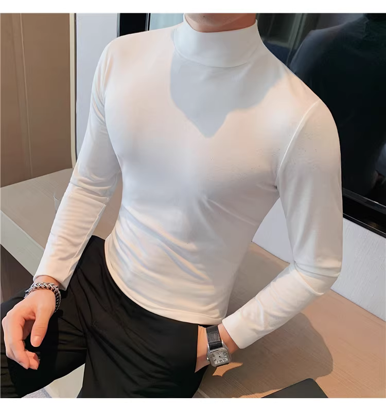- Áo thun dài tay cổ cao dành cho nam, cảm giác cao cấp, ôm vừa vặn, áo sơ mi cổ trung, áo mặc bên trong mùa xuân thu mới.